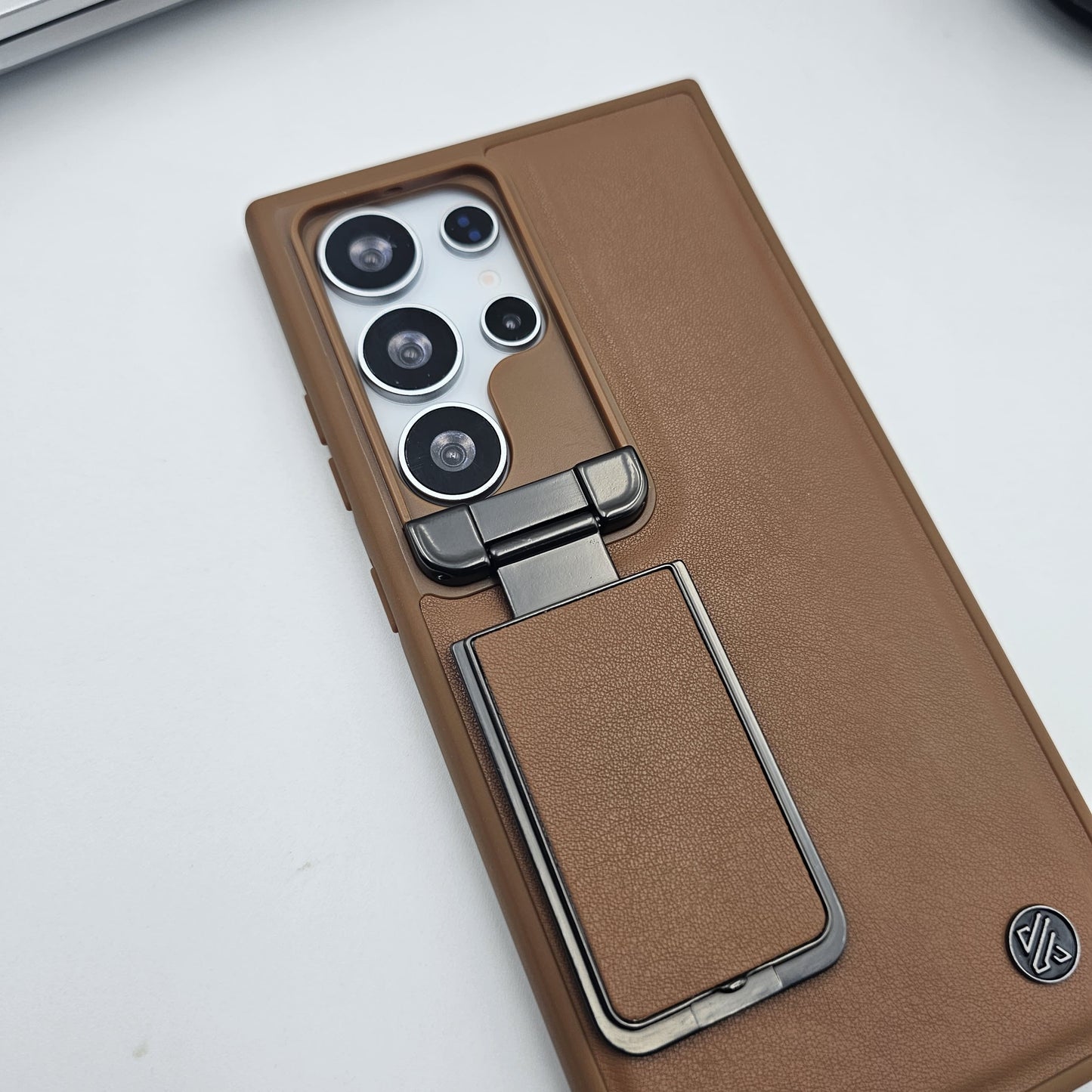 Samsung Galaxy S25 Ultra Leather Foldable Metal Stand Camera Protection Case