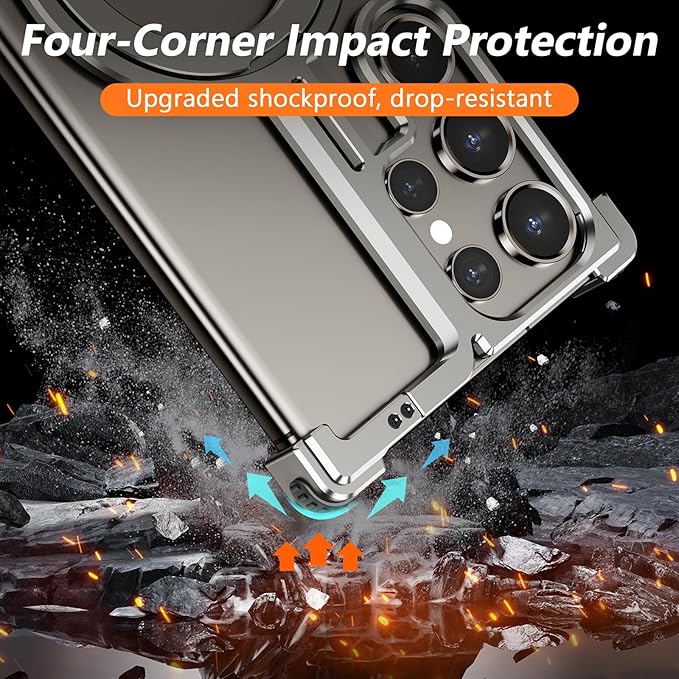 Precision Protection & Heat Disspation: Heavy duty case, shock-absorbing air guard corners combine with metal frame and raised screen edges and camera guard to ensure test-certified protection against drops, bumps. Metal frame and silicone cushions ensure efficient, durability and good product quality, also provides strong magnetic strength.