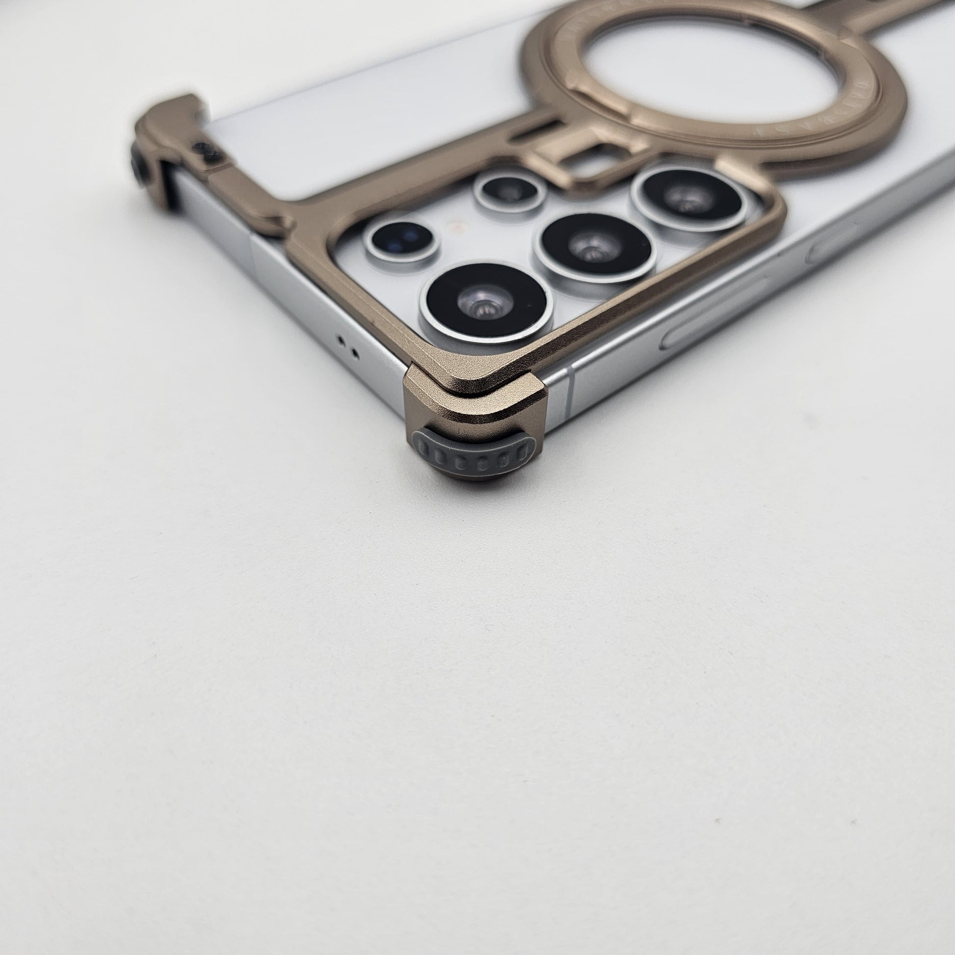 - Elegant & Unique Feel: Enhanced by a reinforced aluminum frame and impact-resistant cushions at each corner. Compitable with magsafe, minimalist design features edgeless sides and a hollow metal back, adding a seamless touch of elegance.