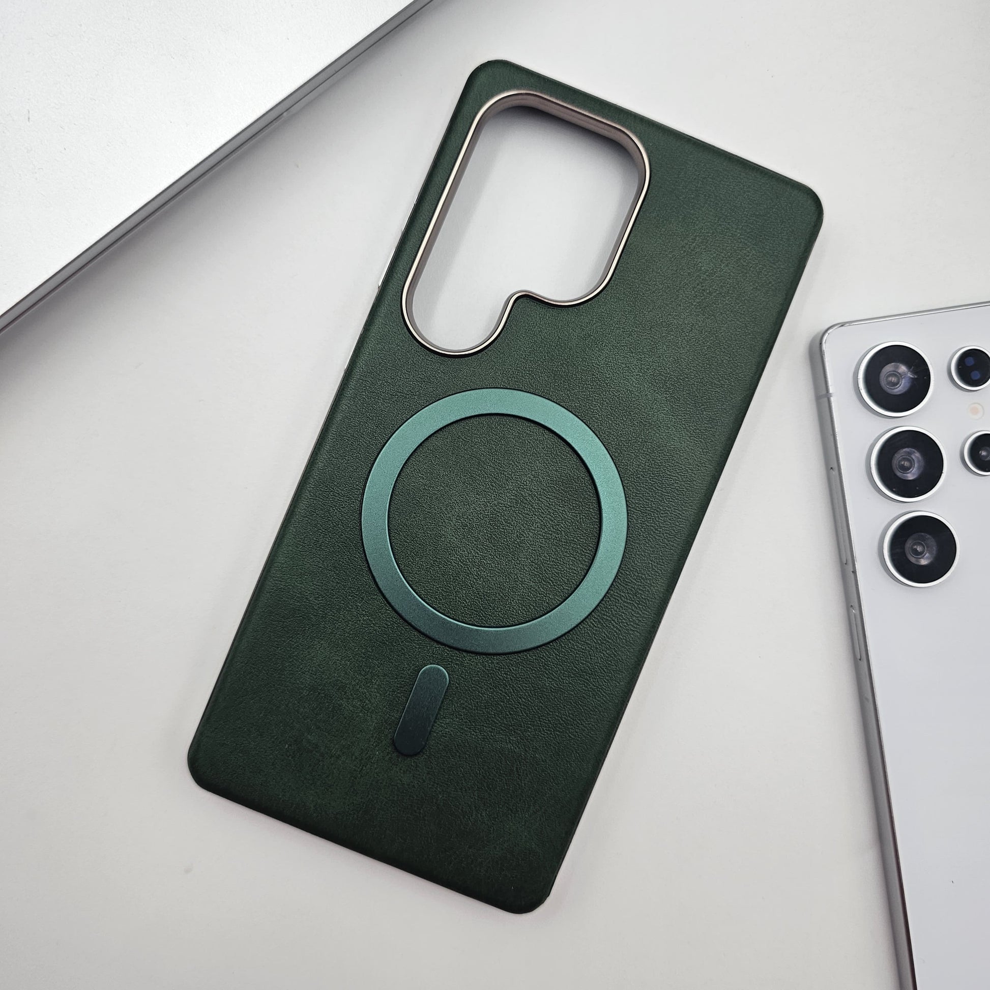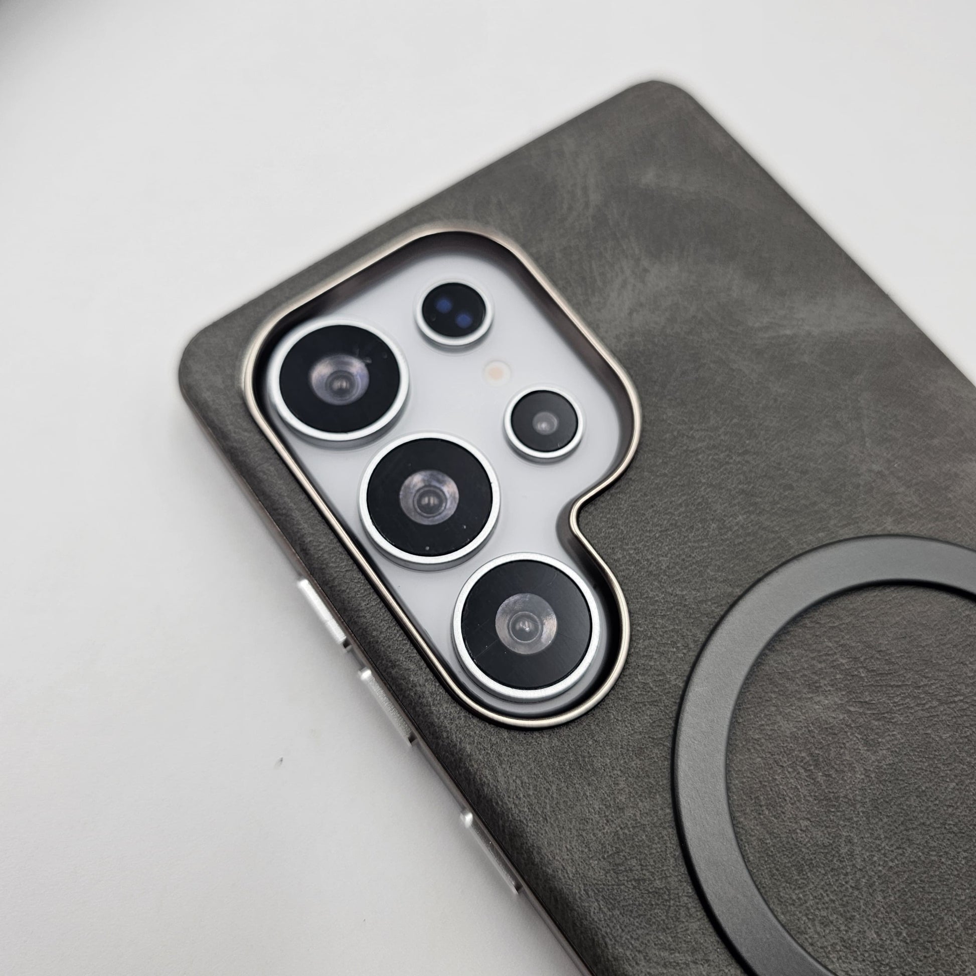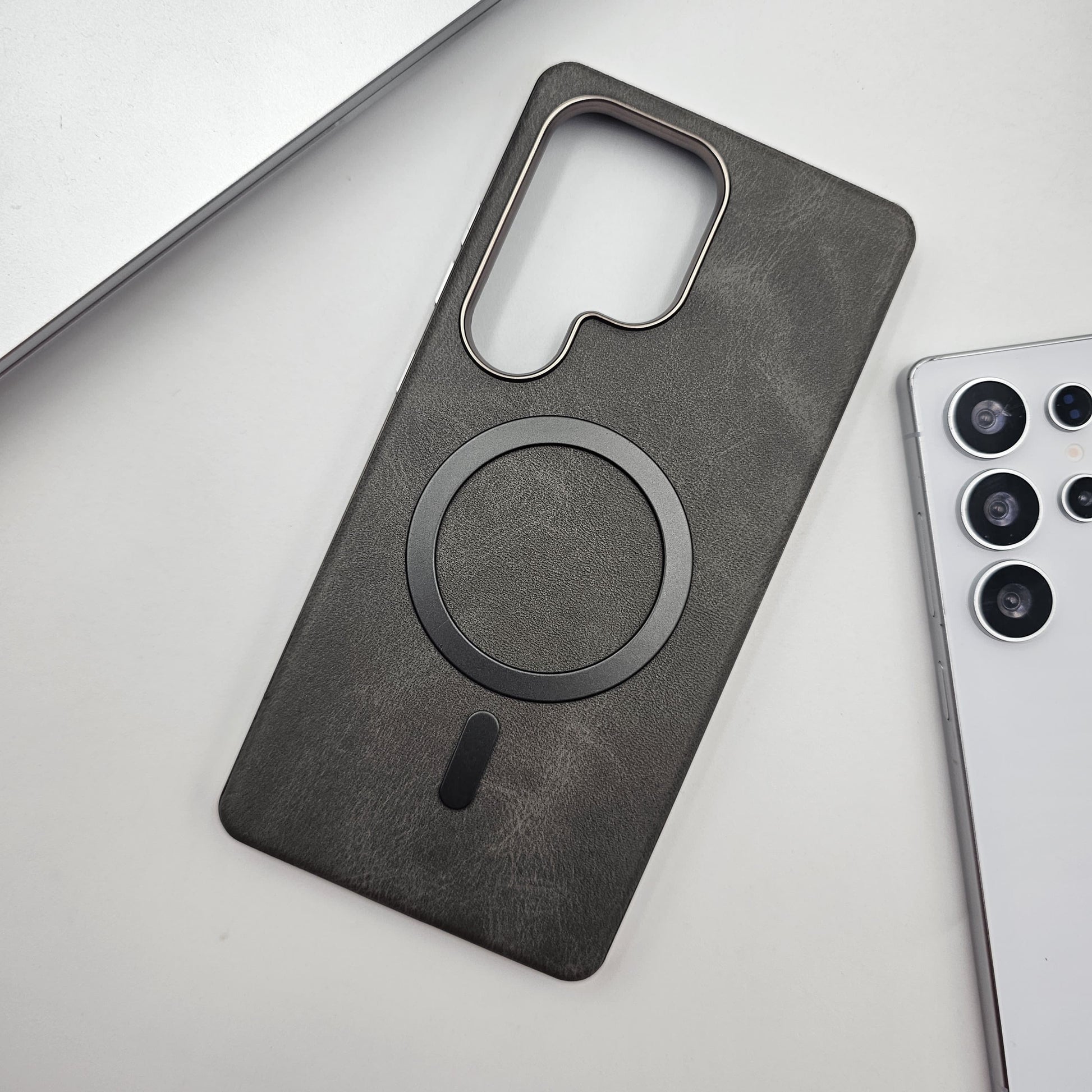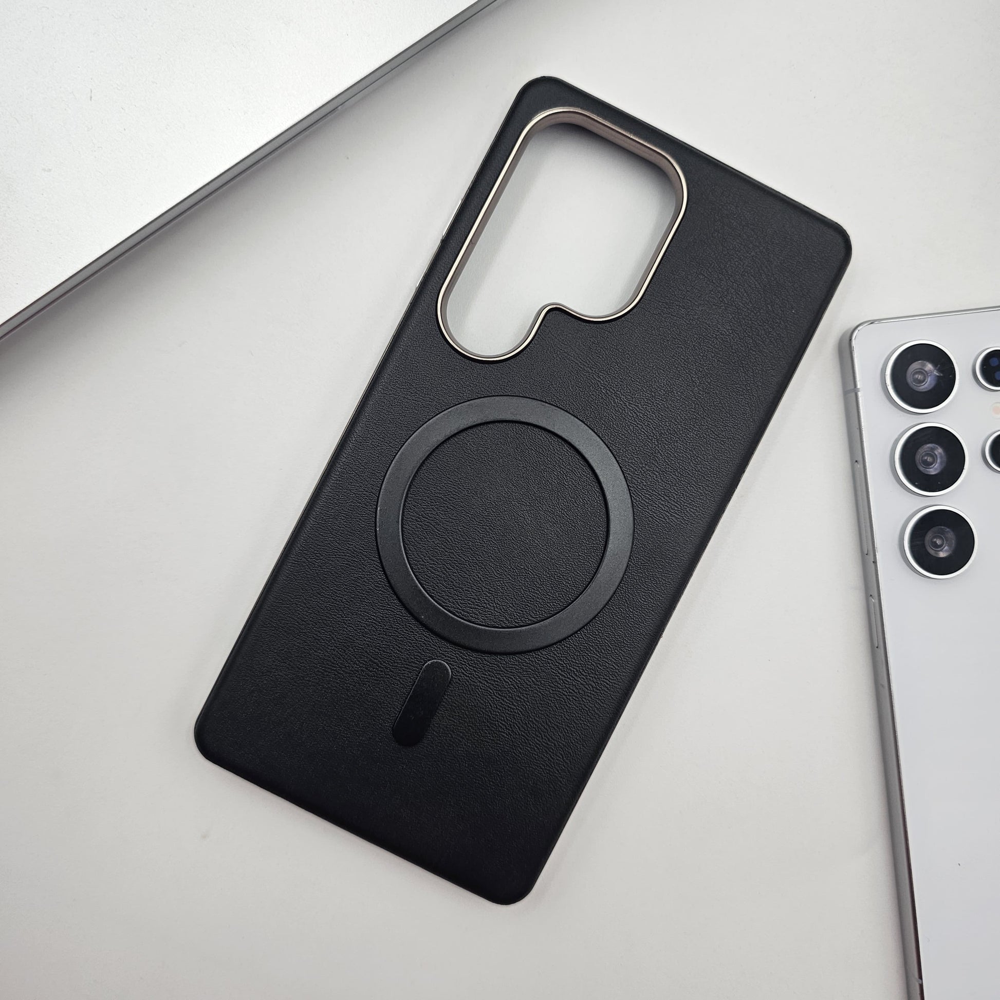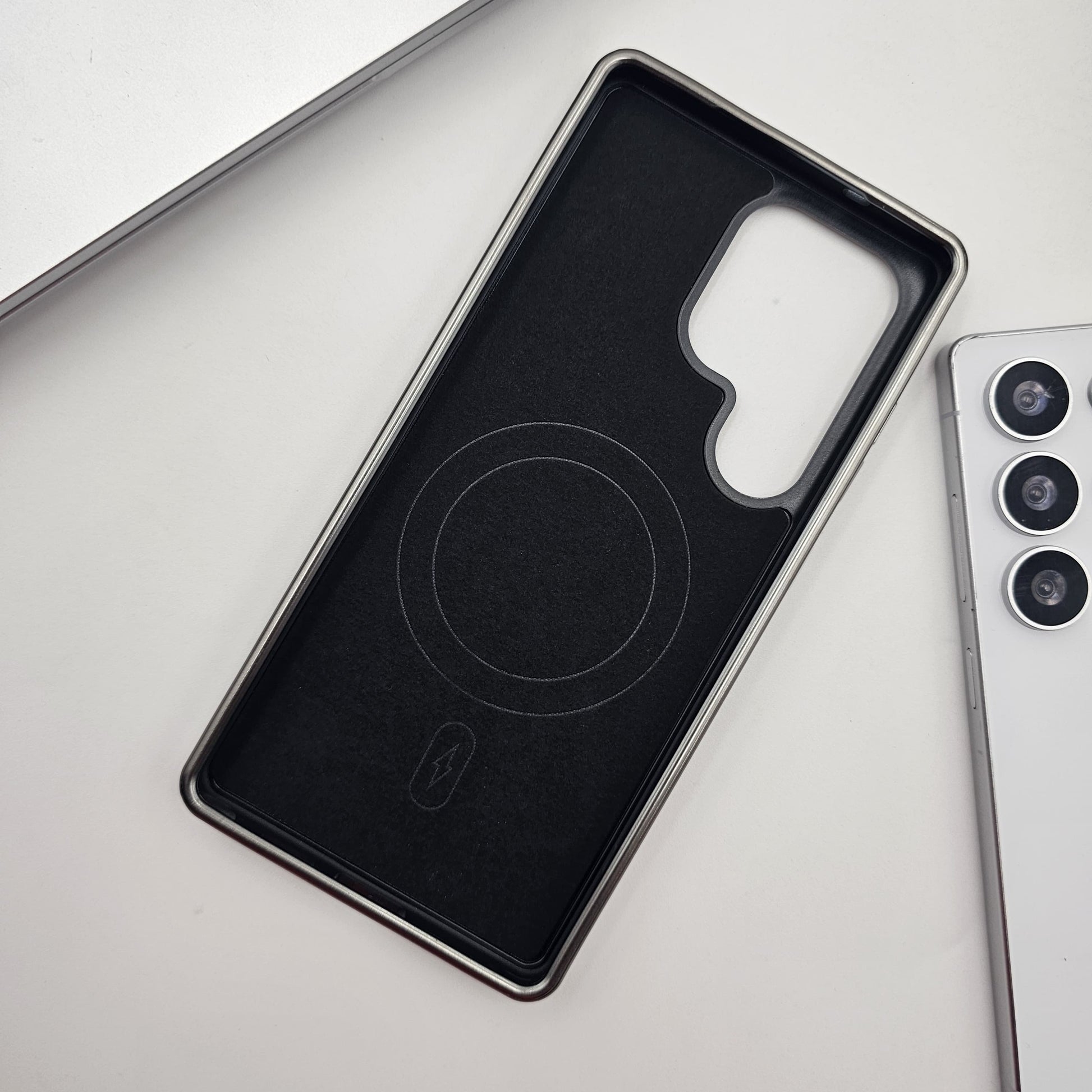 Samsung Galaxy S25 Ultra PU Leather Magnetic Magsafe Metallic Border Case