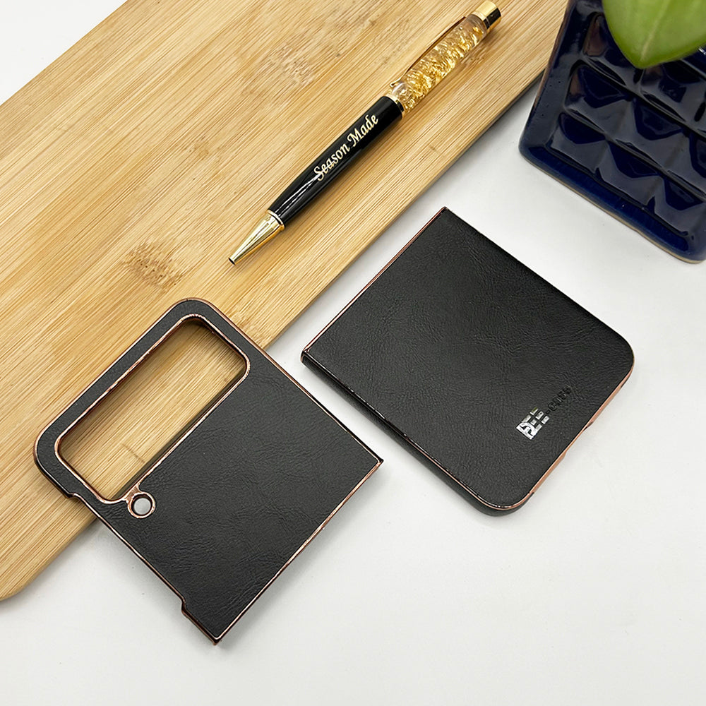 Samsung Galaxy Z Flip 3 PU Leather Chrome Plated Side Case Cover Clearance Sale