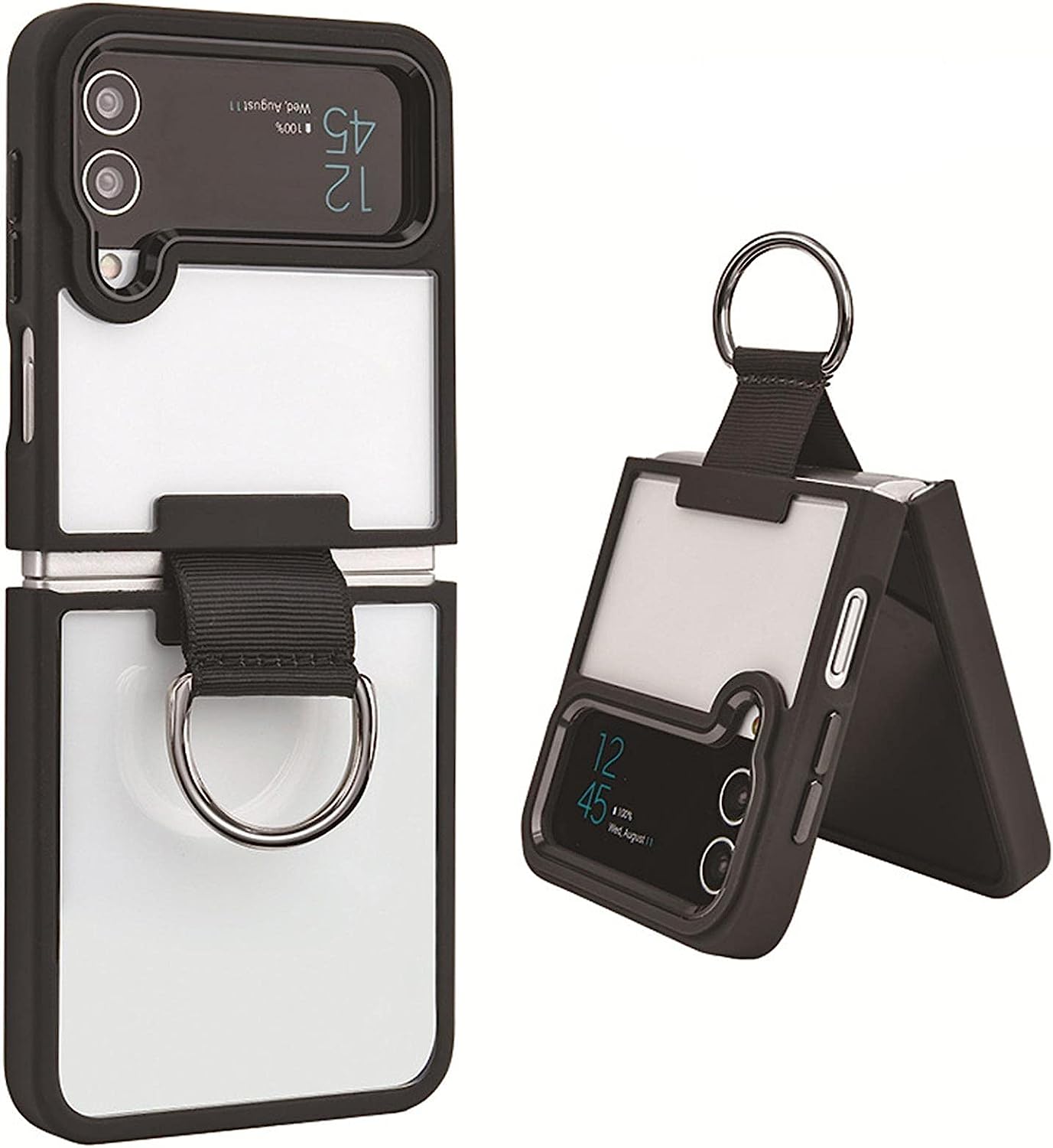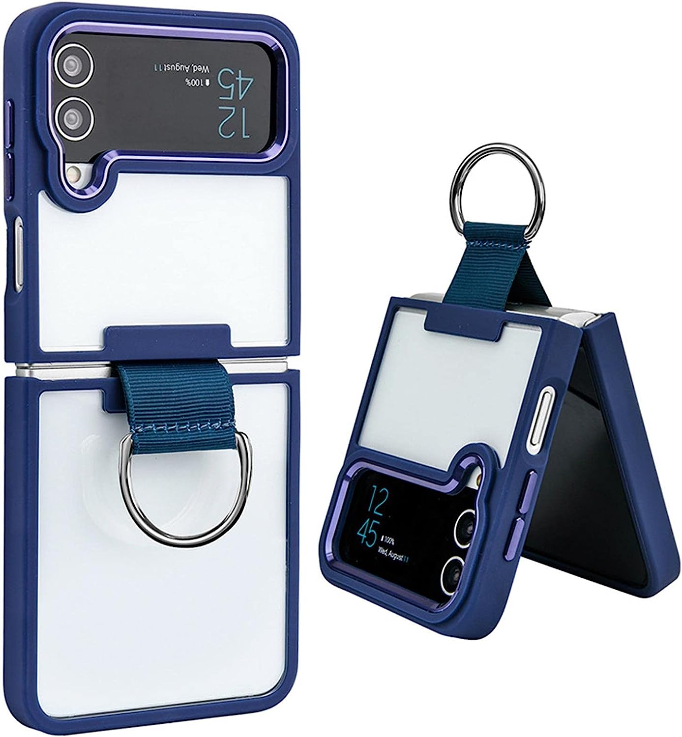 Samsung Galaxy Z Flip 4 Transparent Shockproof Clear Case With Metal Ring Stand