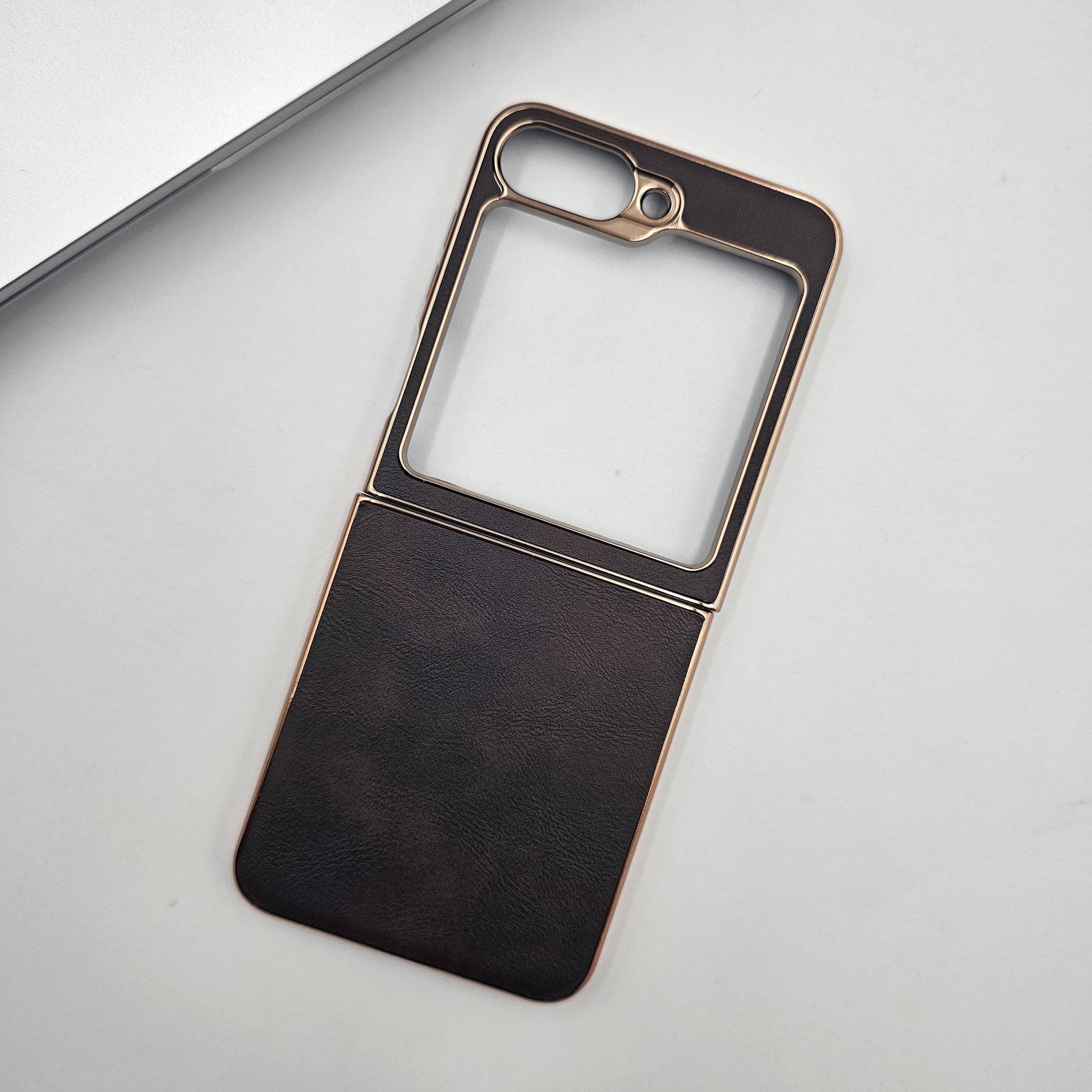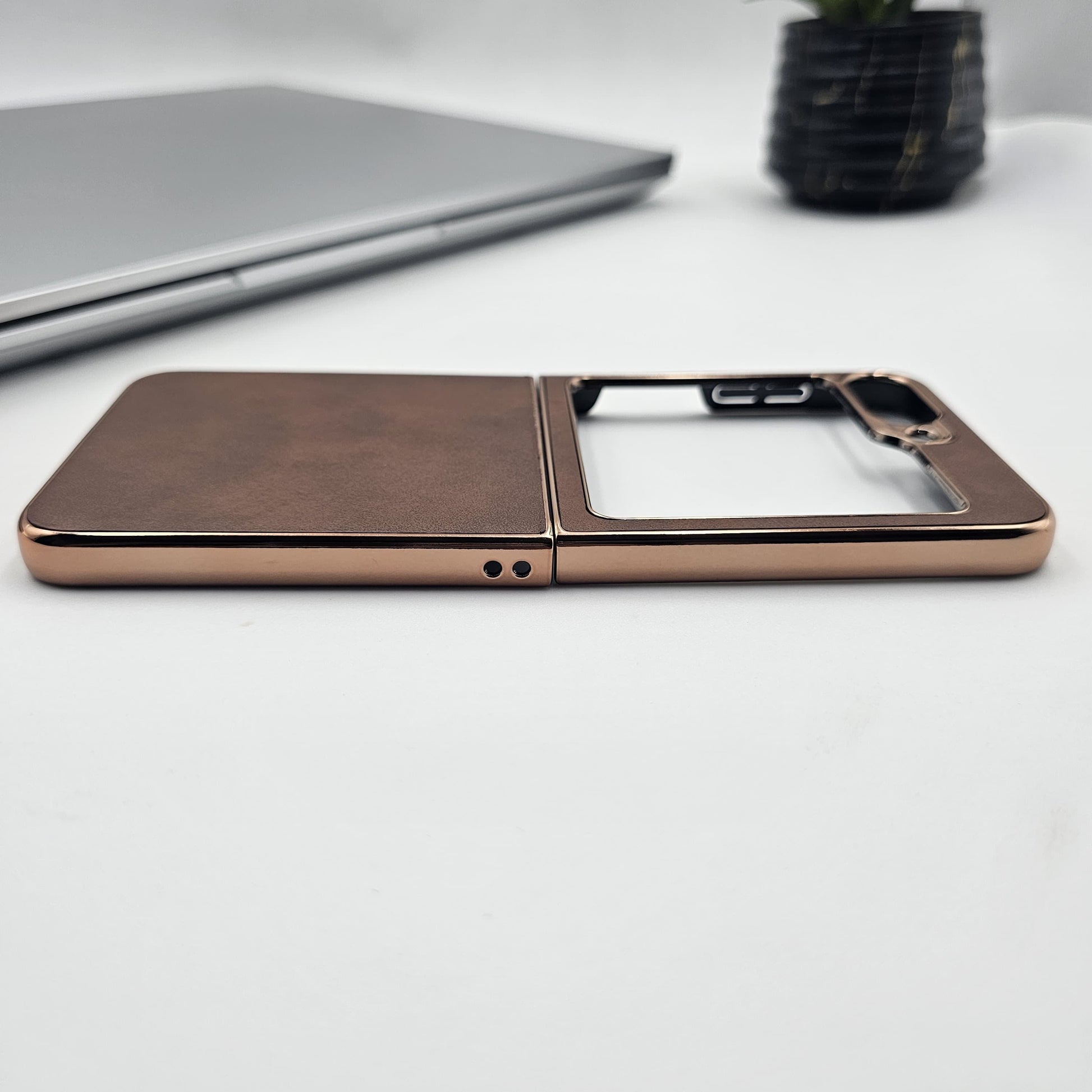 Gold Electroplated Leather Pattern Leather Luxury Case in a sleek new design for the Samsung Galaxy Z Flip
