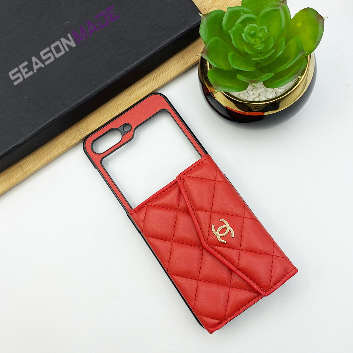 Samsung Galaxy Z Flip 5 Luxury CC Puffer Stitch Card Holder Case Cover