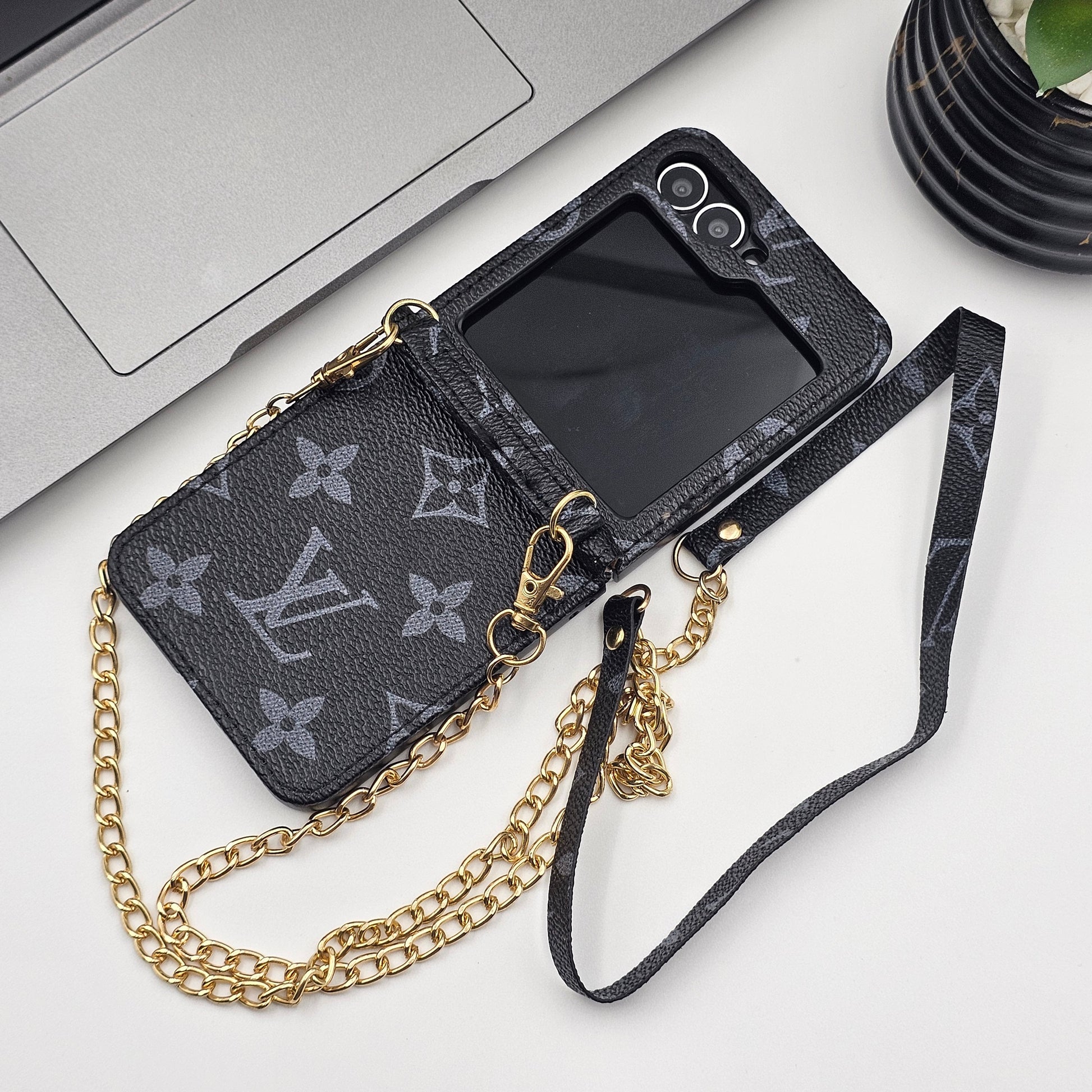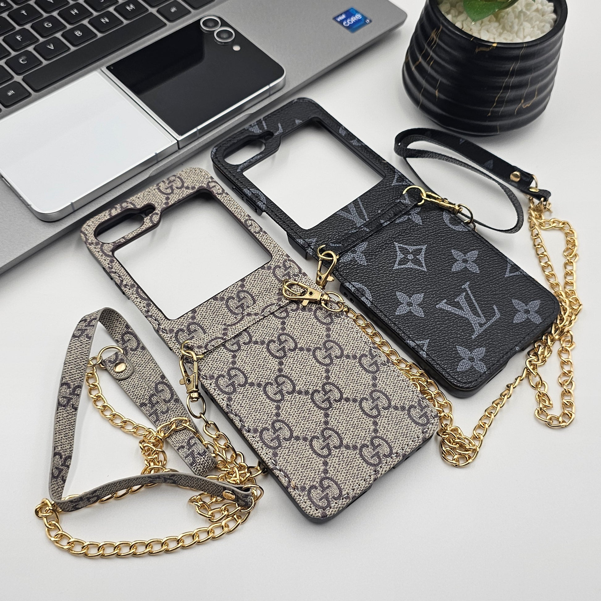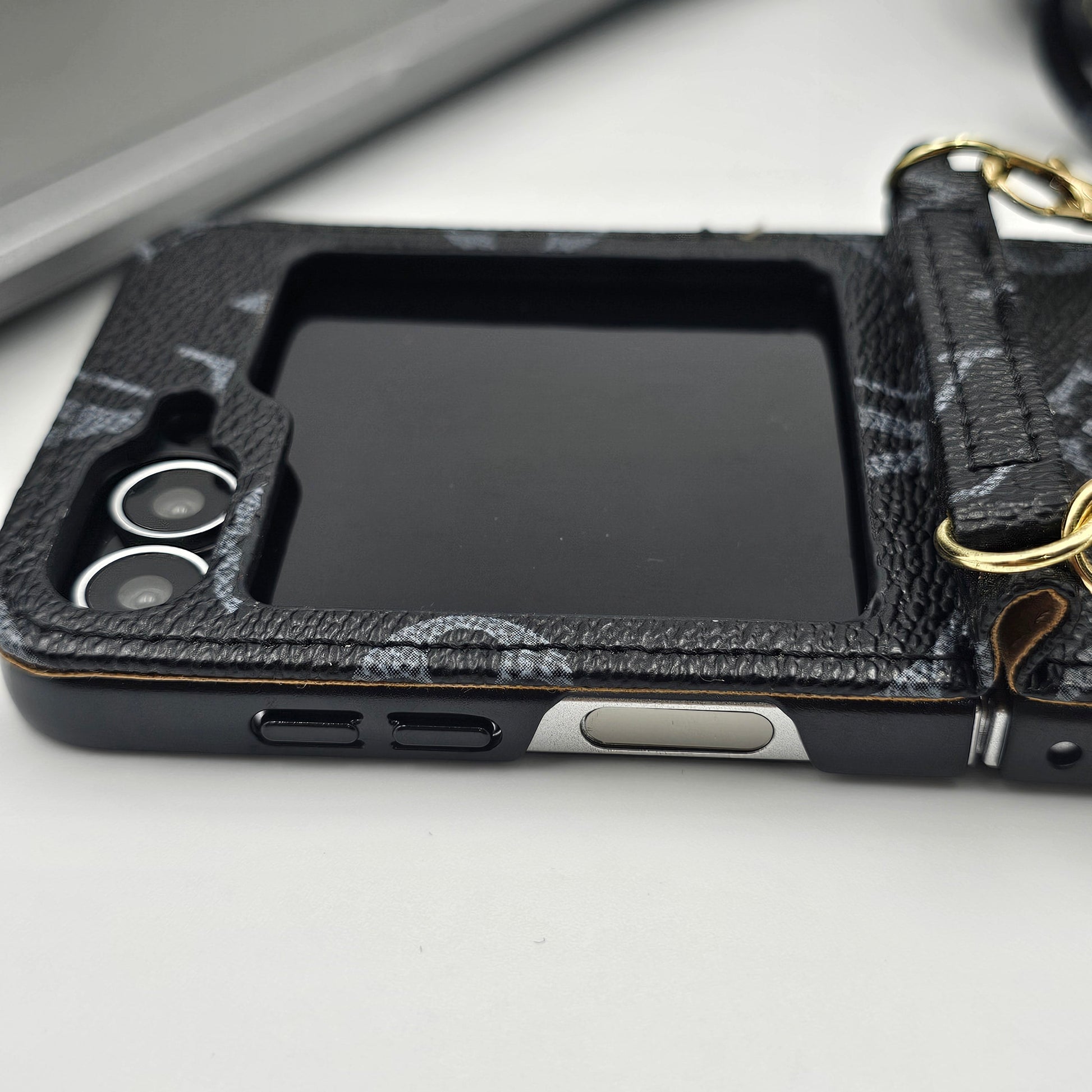 Samsung Galaxy Z Flip 5 Luxury PU Leather Brand Case With Sling Chain Strap