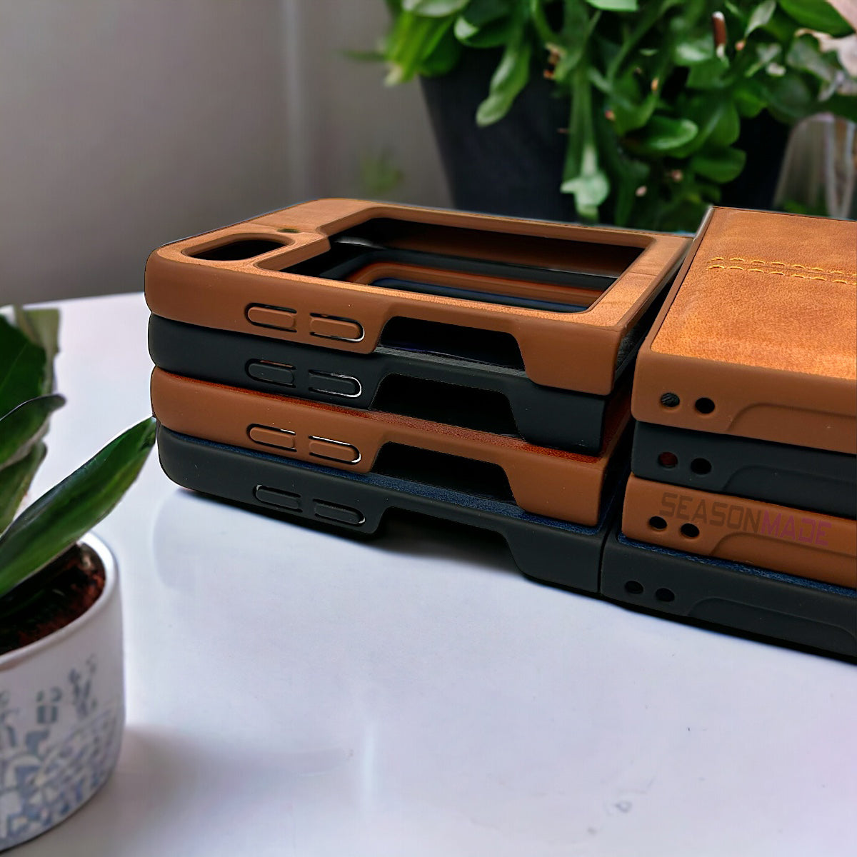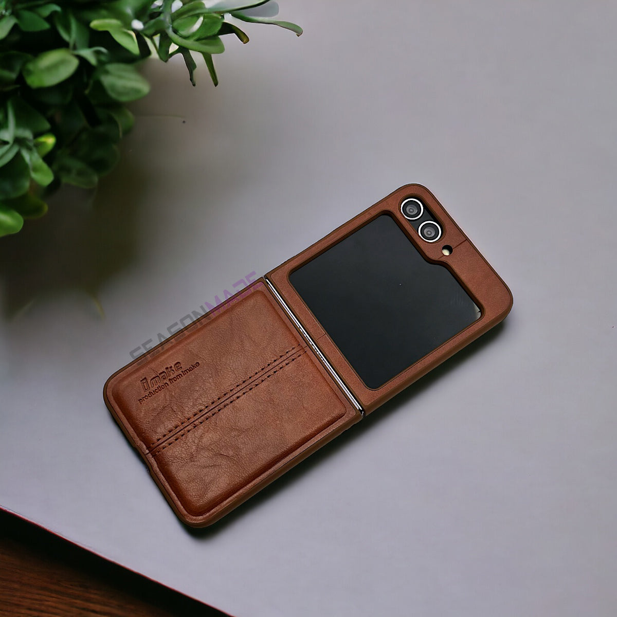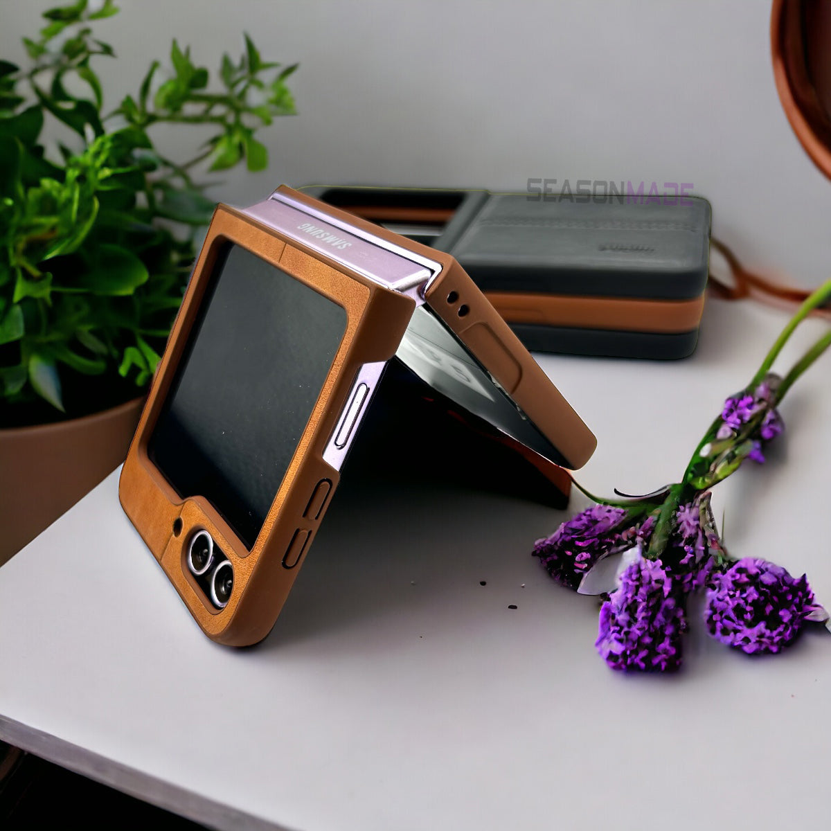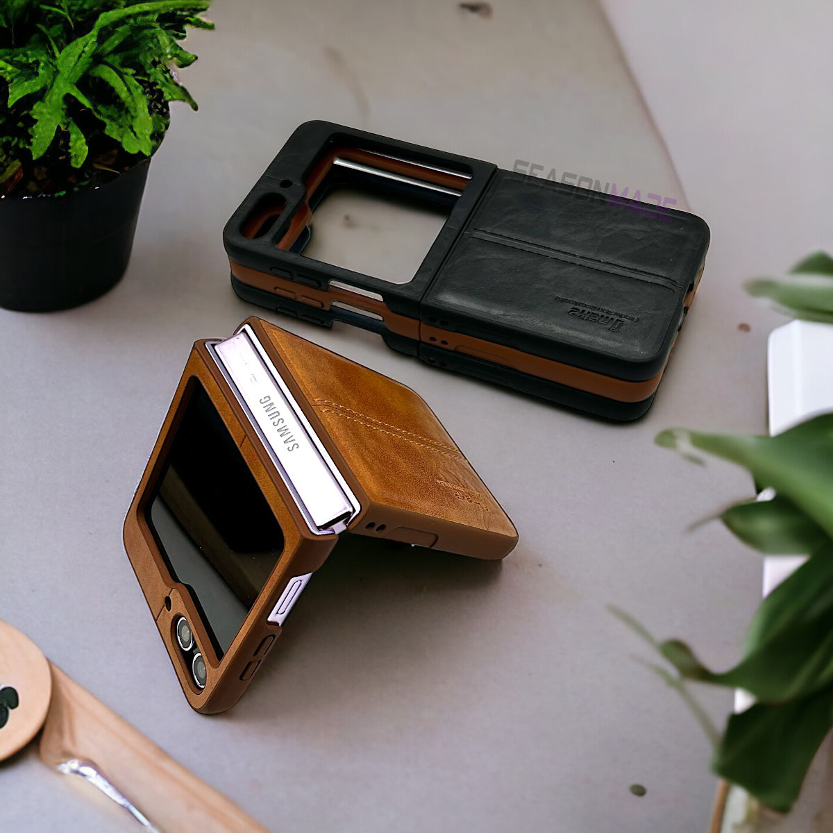 Samsung Galaxy Z Flip 5 PU Leather Stitched Case With Inside Velvet Cover