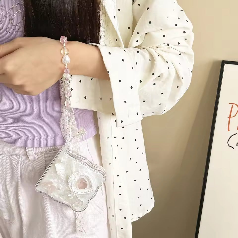 Comes with a detachable pearl beaded strap for easy carrying and stylish flair.