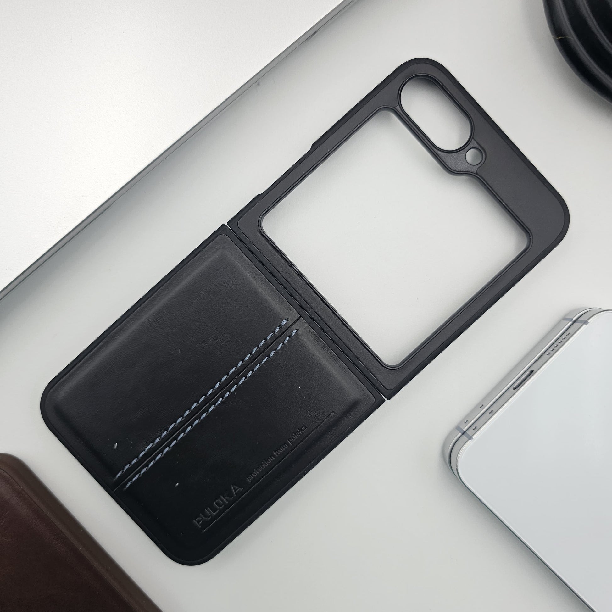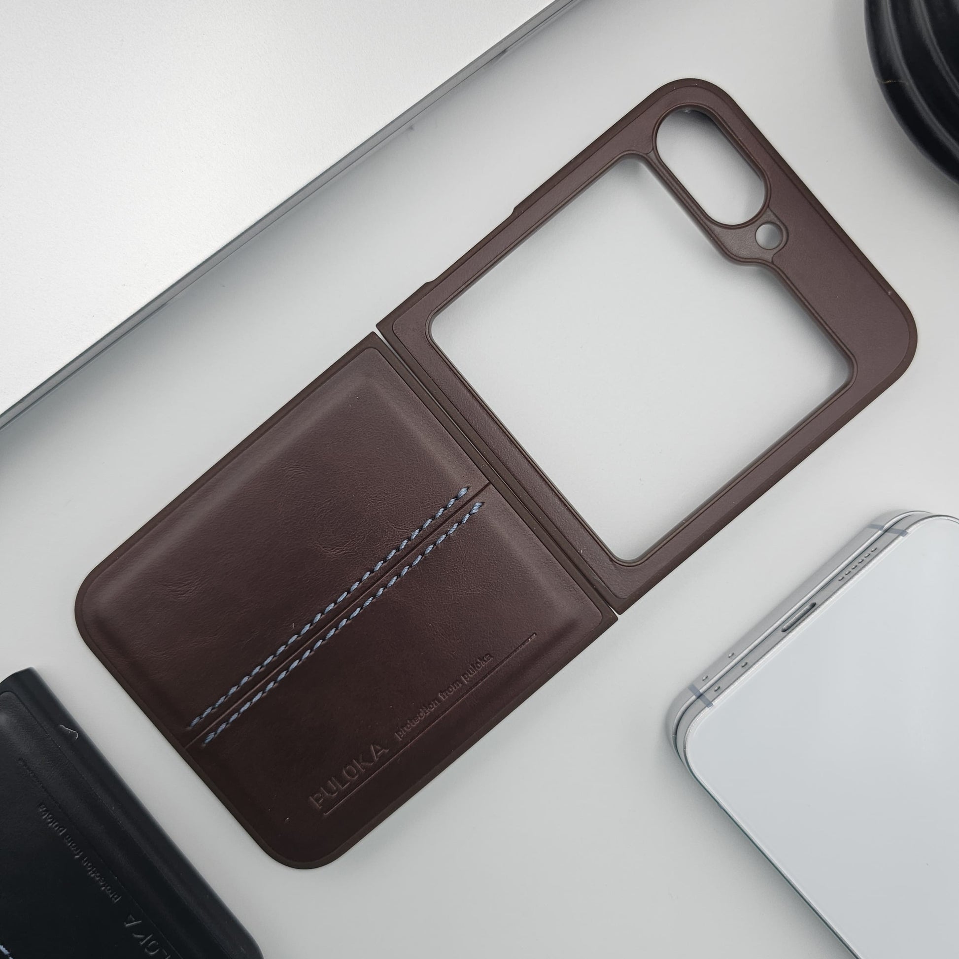 Samsung Galaxy Z Flip 6 Centre Stitched Leather Case Inside Velvet