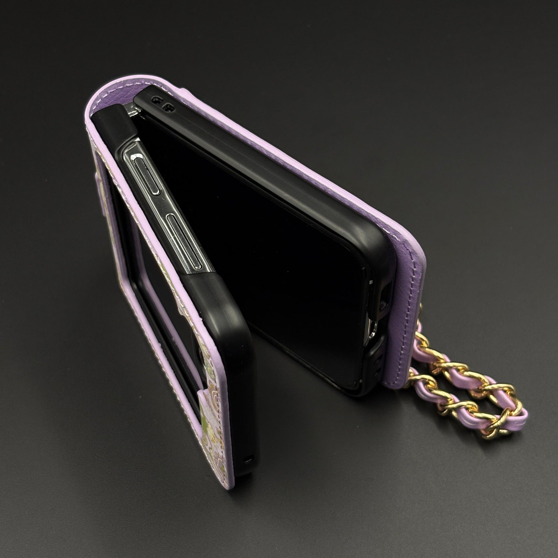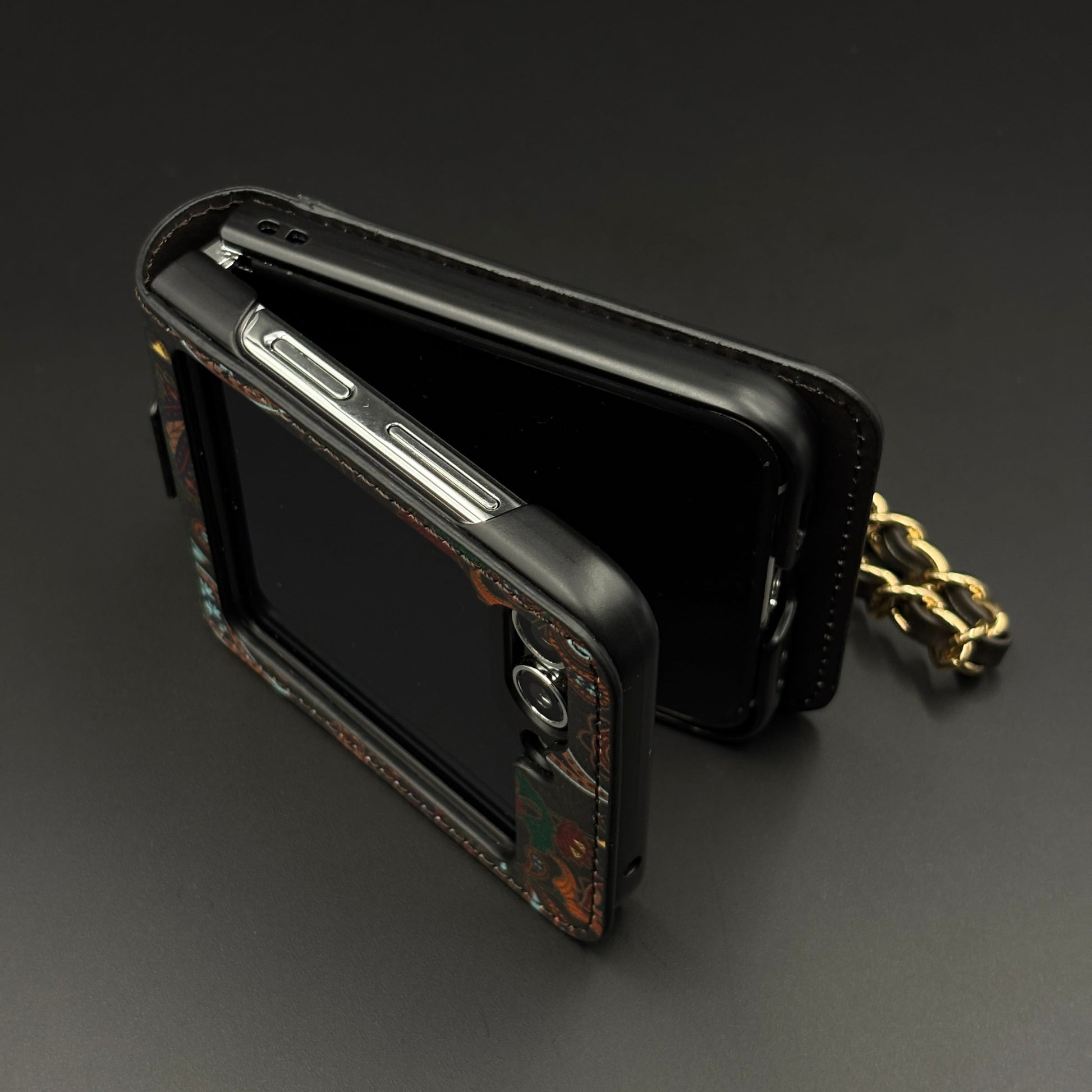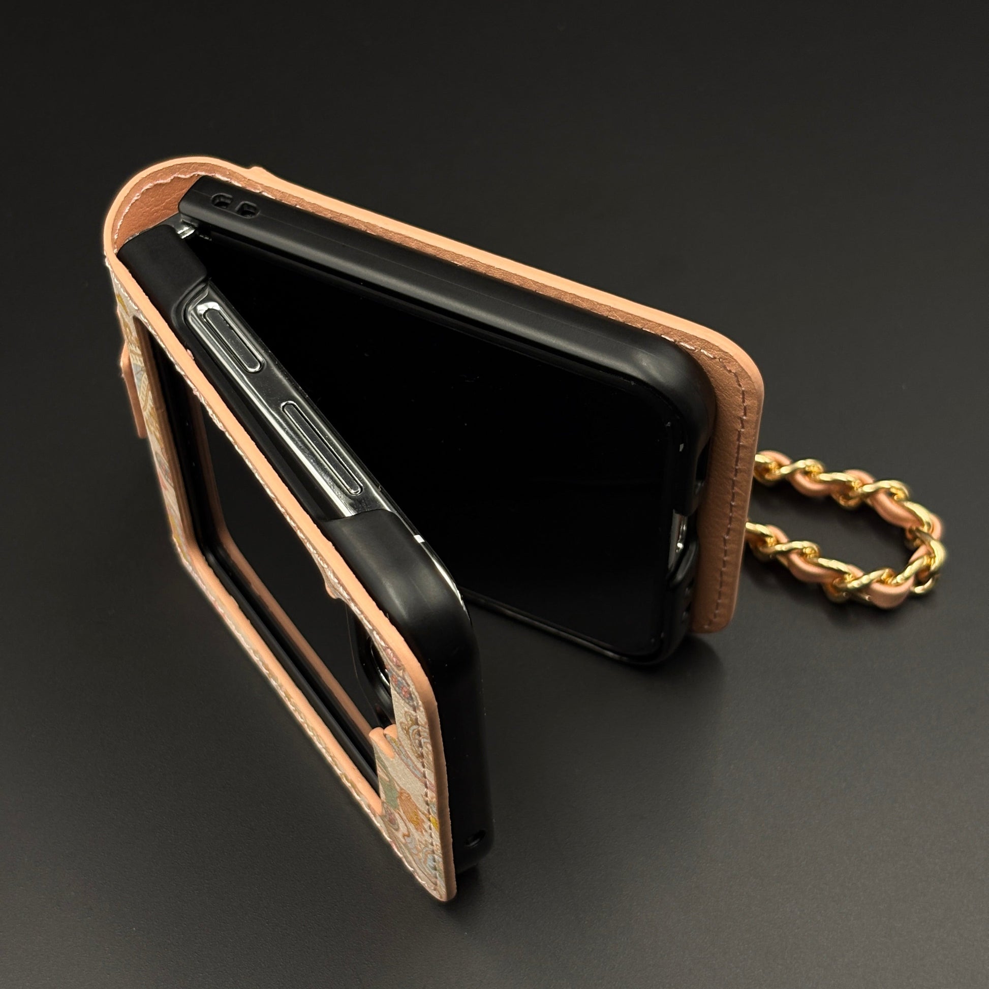 Celebrate the richness of Indian heritage with this beautifully crafted Designer Case for Samsung Galaxy Z Flip 6. Featuring intricate Indian art-inspired paisley patterns, this case brings together traditional aesthetics and modern functionality. Made with premium PU leather and adorned with a detachable gold-accented chain, it’s perfect for those who love bold, ethnic elegance in their everyday essentials. The built-in grip strap adds comfort and practicality for daily use.