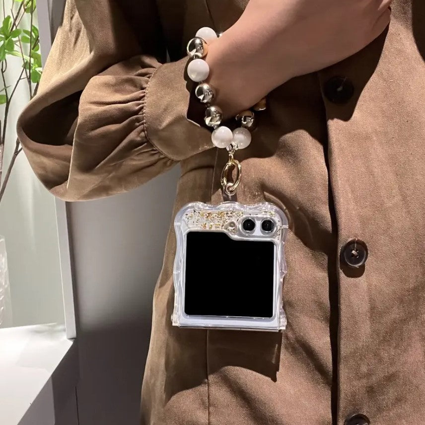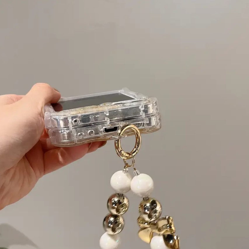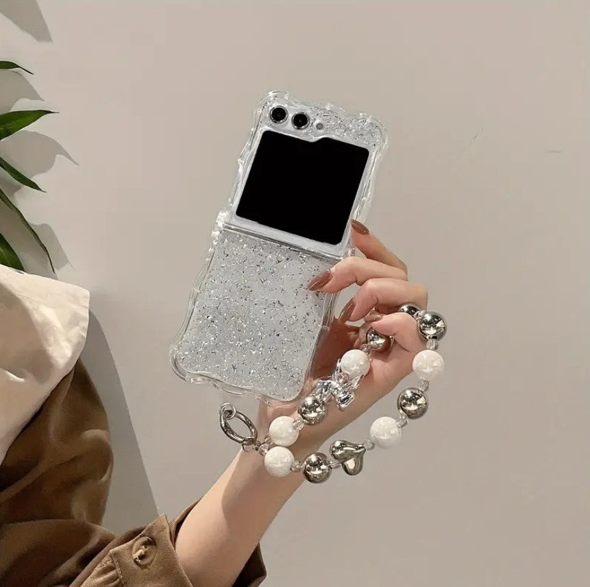 Samsung Galaxy Z Flip 6 Shimmer Glitter Case With Pearl Holder