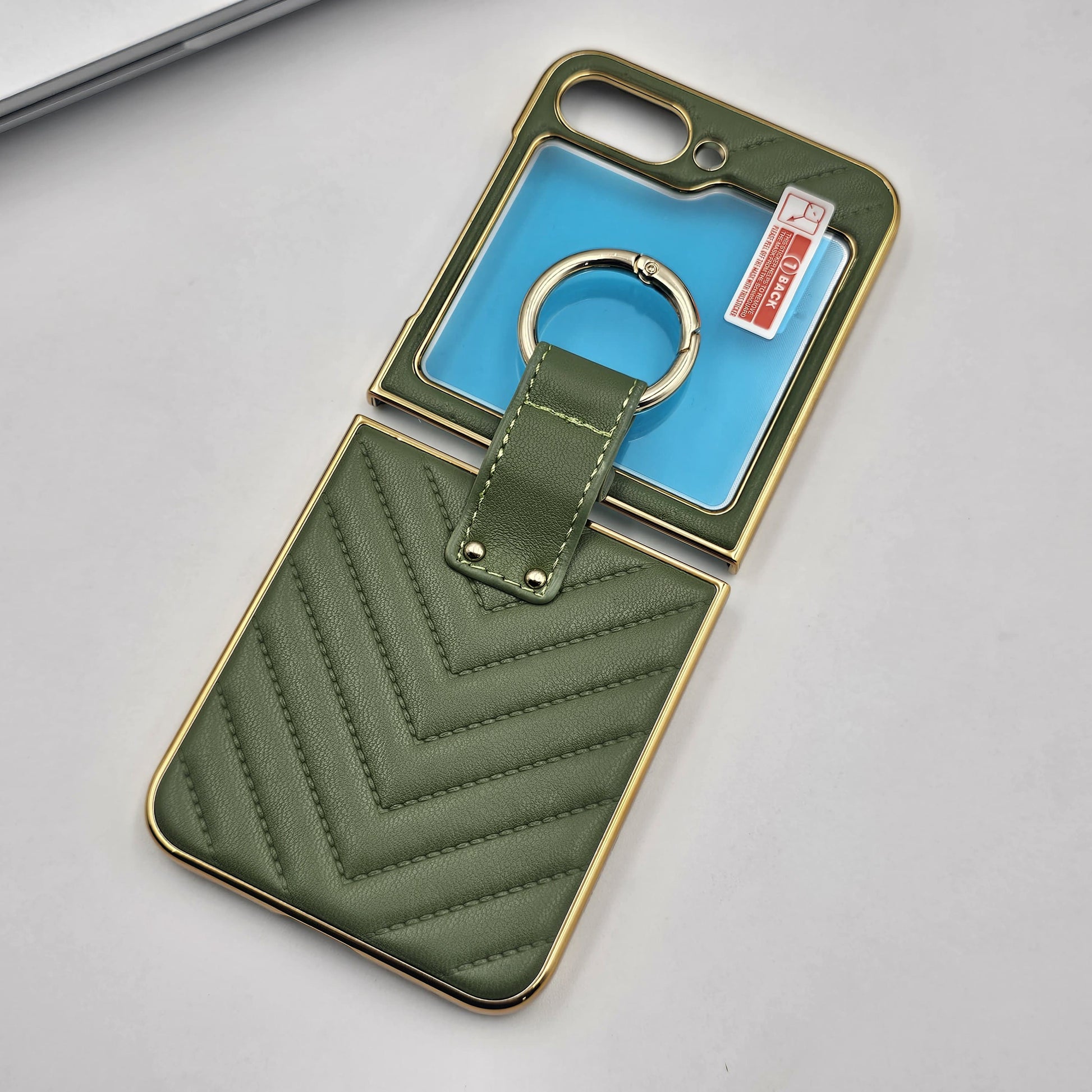 Luxury Puffer Leather Case with Ring Holder for Samsung Galaxy Z Flip 7 FE | Side Gold Plated Cover