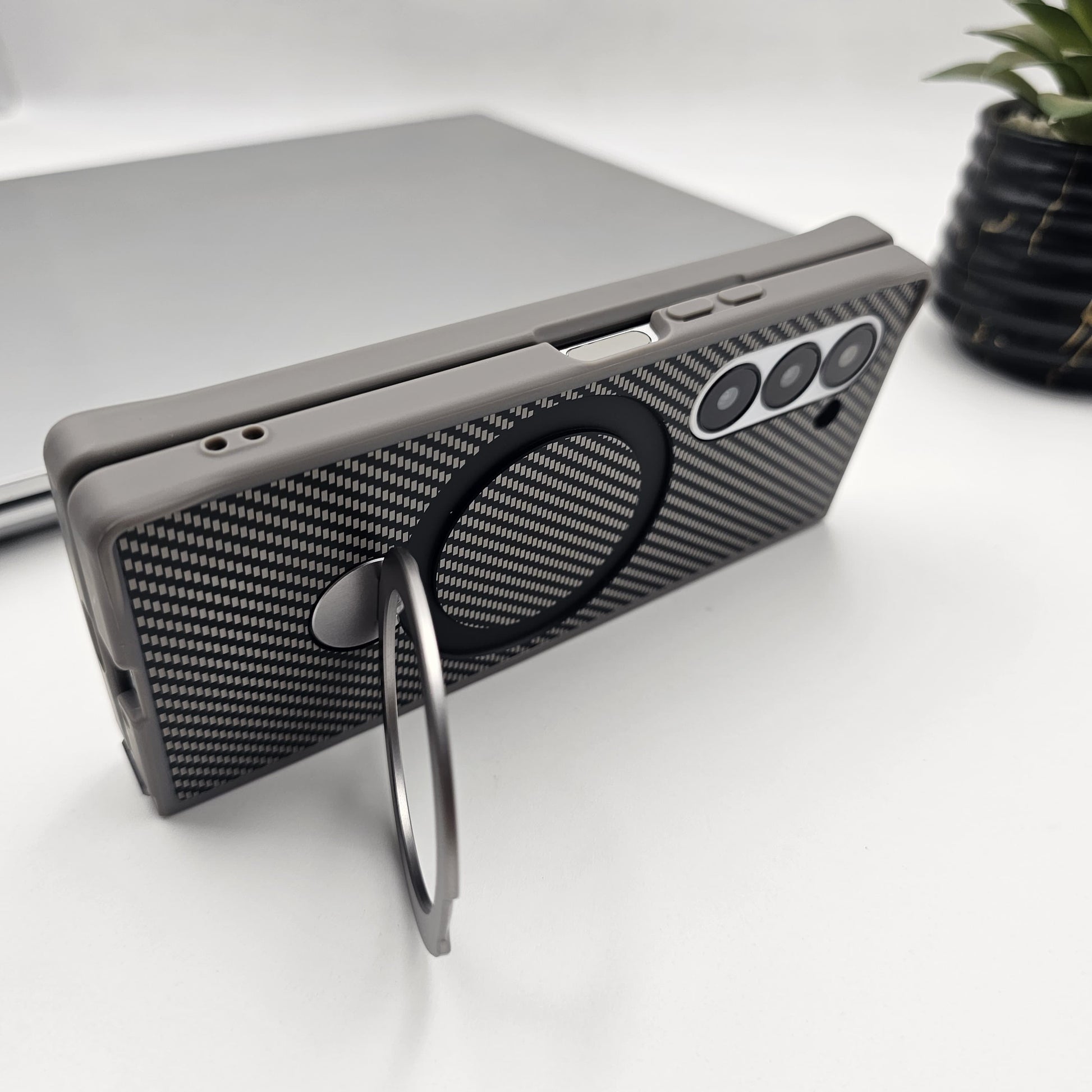 Samsung Galaxy Z Fold 5 Carbon Fibre With Magnetic Magsafe Ring Stand Case