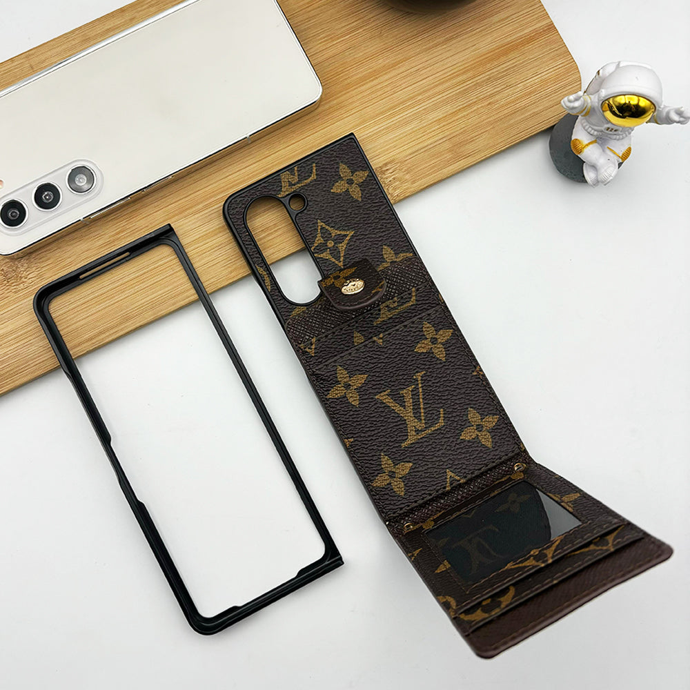 Samsung Galaxy Z Fold 5 Luxury Brand PU leather Wallet Case Cover With Metal Ring Holder