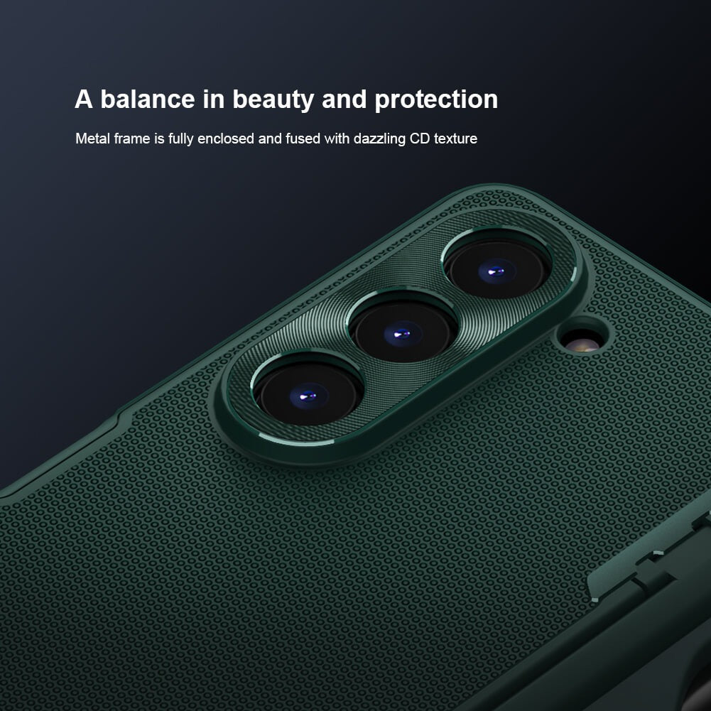 Nillkin Super Frosted Shield Fold Pen holder version Matte cover case for Samsung Galaxy Z Fold5 (Fold 5), Super Frosted Shield Fold is a functional upgrade of the best-selling classic product, bringing a more convenient user experience than the original one. Continue the classic bump texture design on the surface, providing a refreshing and delicate touch; Adopt 360 ° all-inclusive protection to effectively prevent phone collisions.