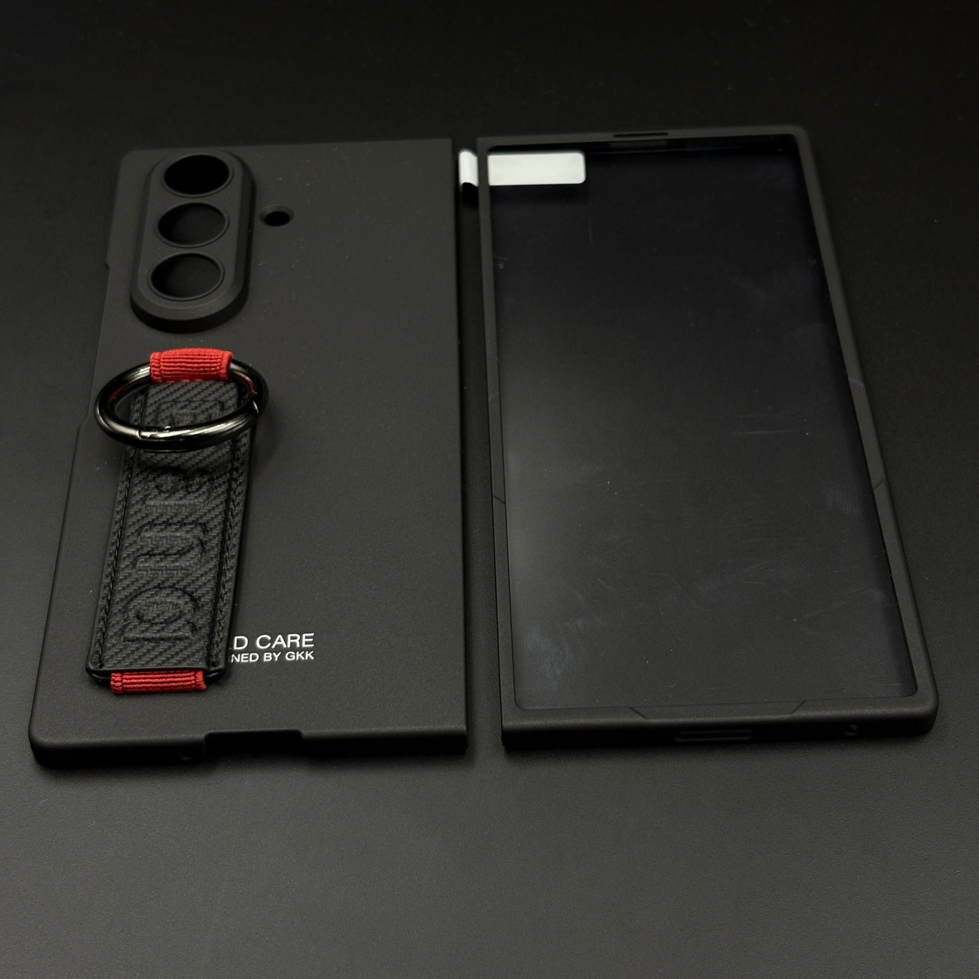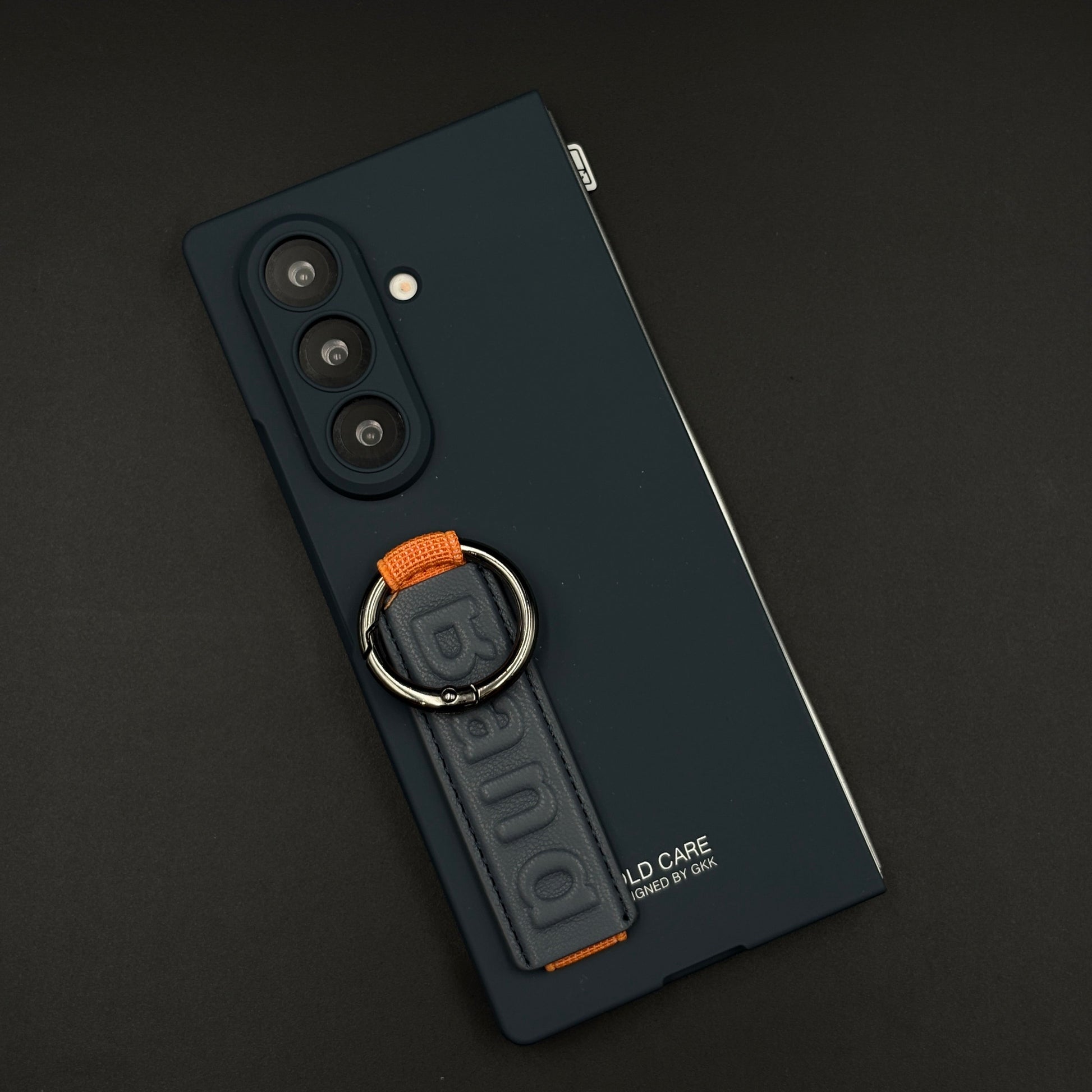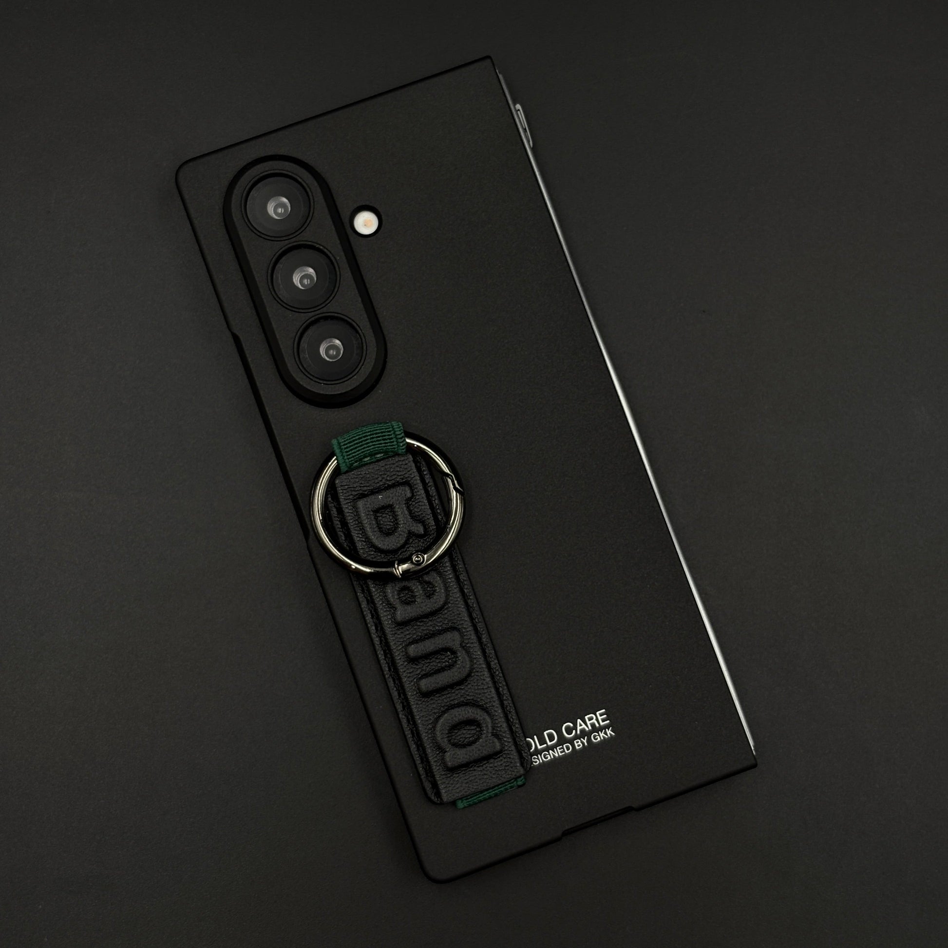 Keep your Galaxy Z Fold 5 safe and stylish with this ring holder band case featuring a built-in front screen protector. Designed for secure grip, hands-free use, and all-around protection.