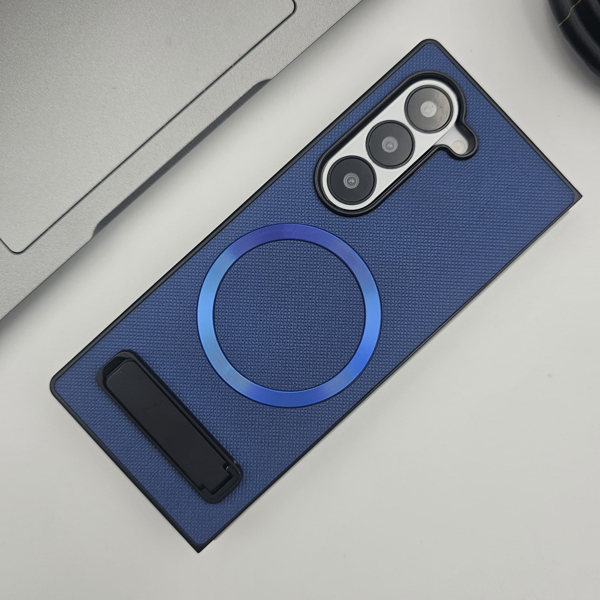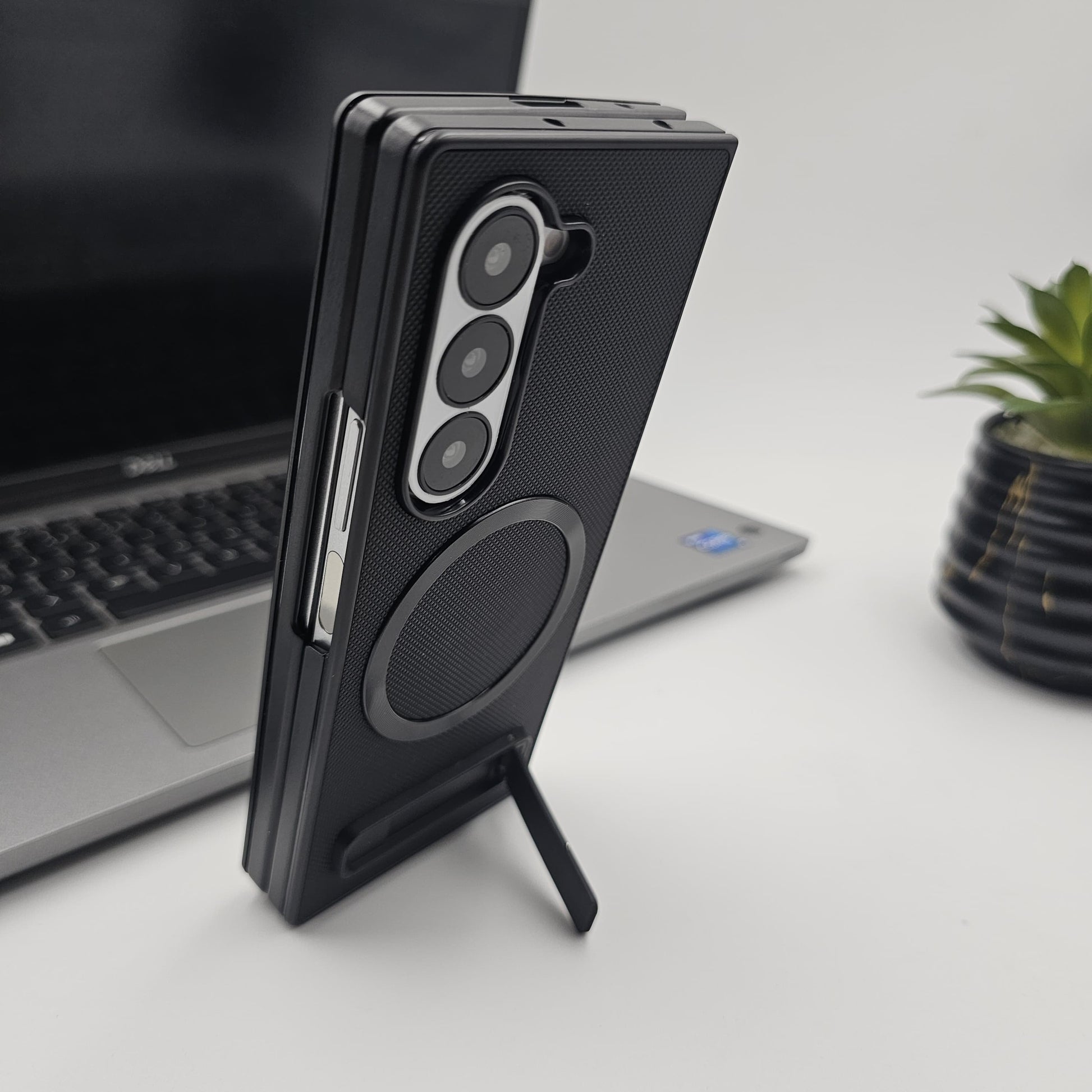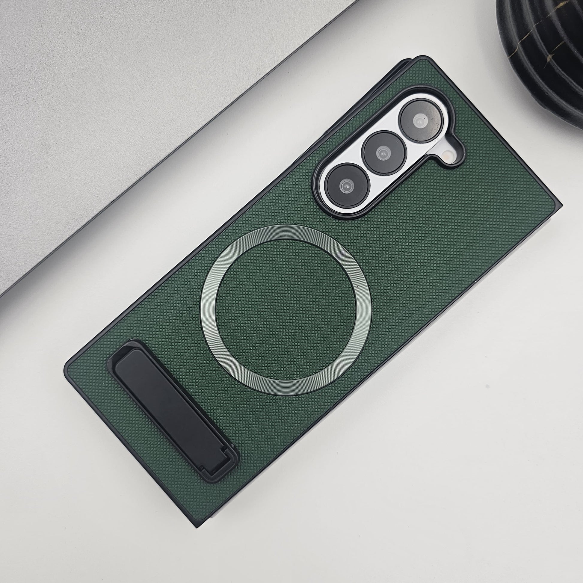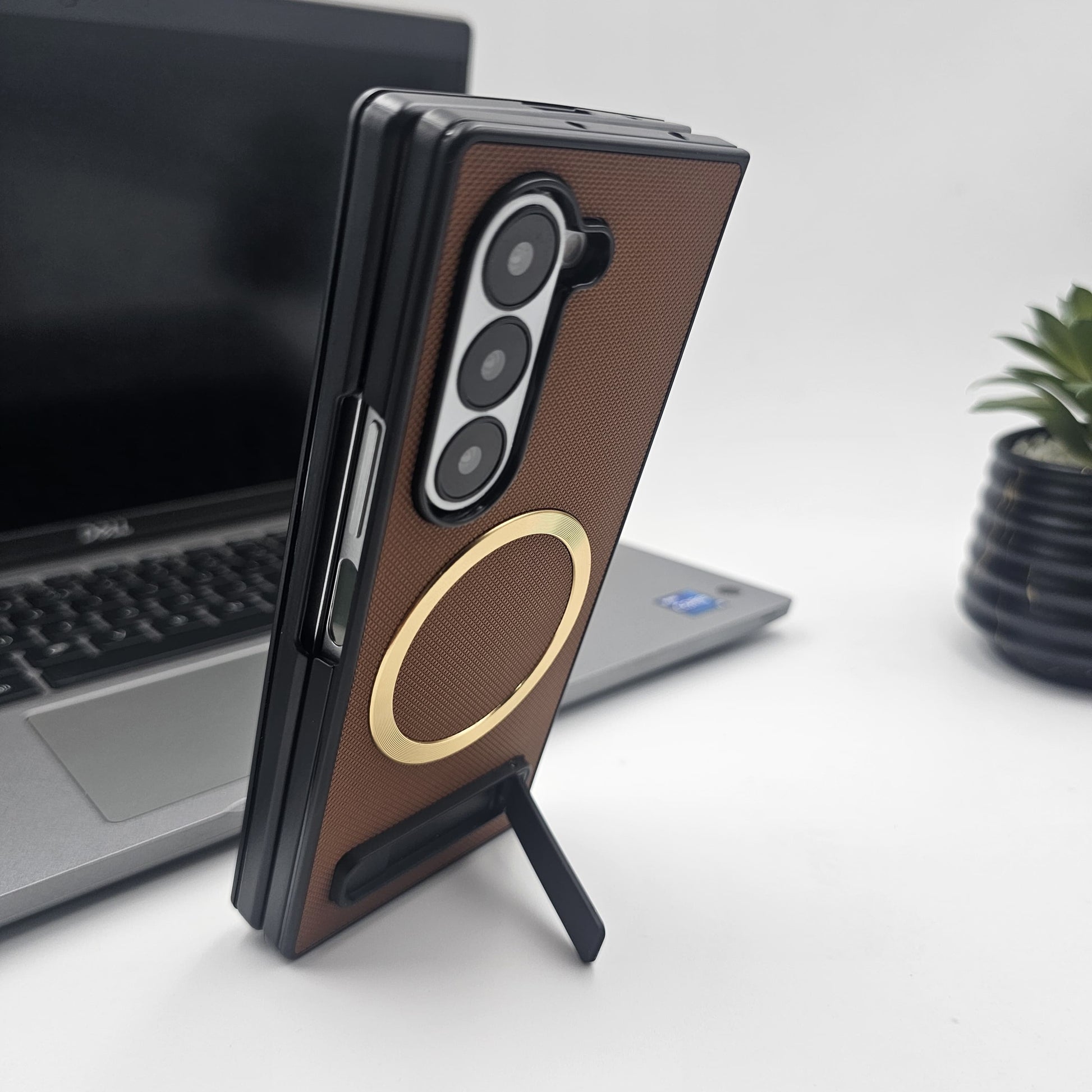 Samsung Galaxy Z Fold 6 Textured Leather Magsafe With Kickstand Case