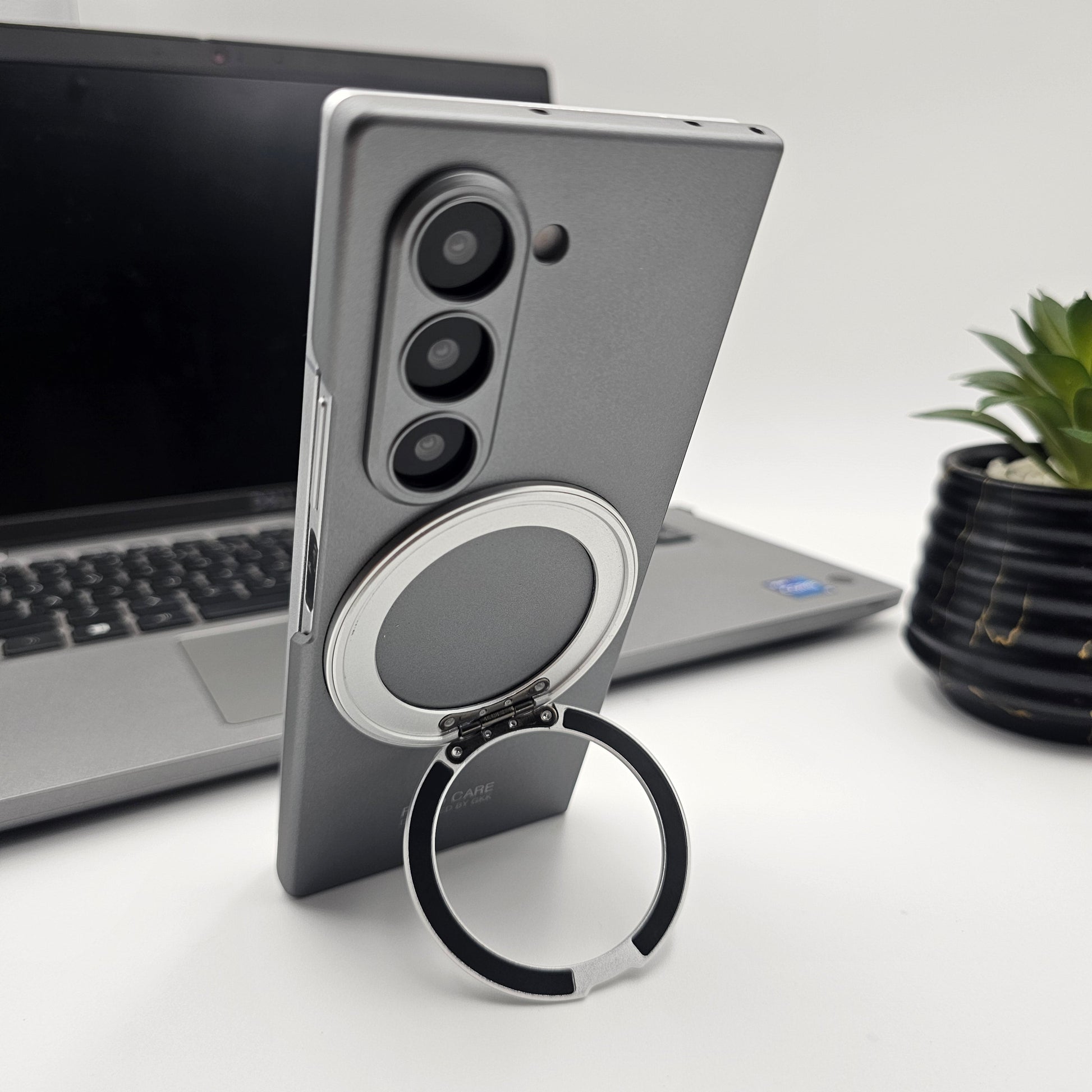 Give your Galaxy Z Fold 6 the protection it deserves with this sleek and functional case featuring a metal magnetic ring stand and an included front screen protector. Designed for elegance, grip, and usability — all in one.