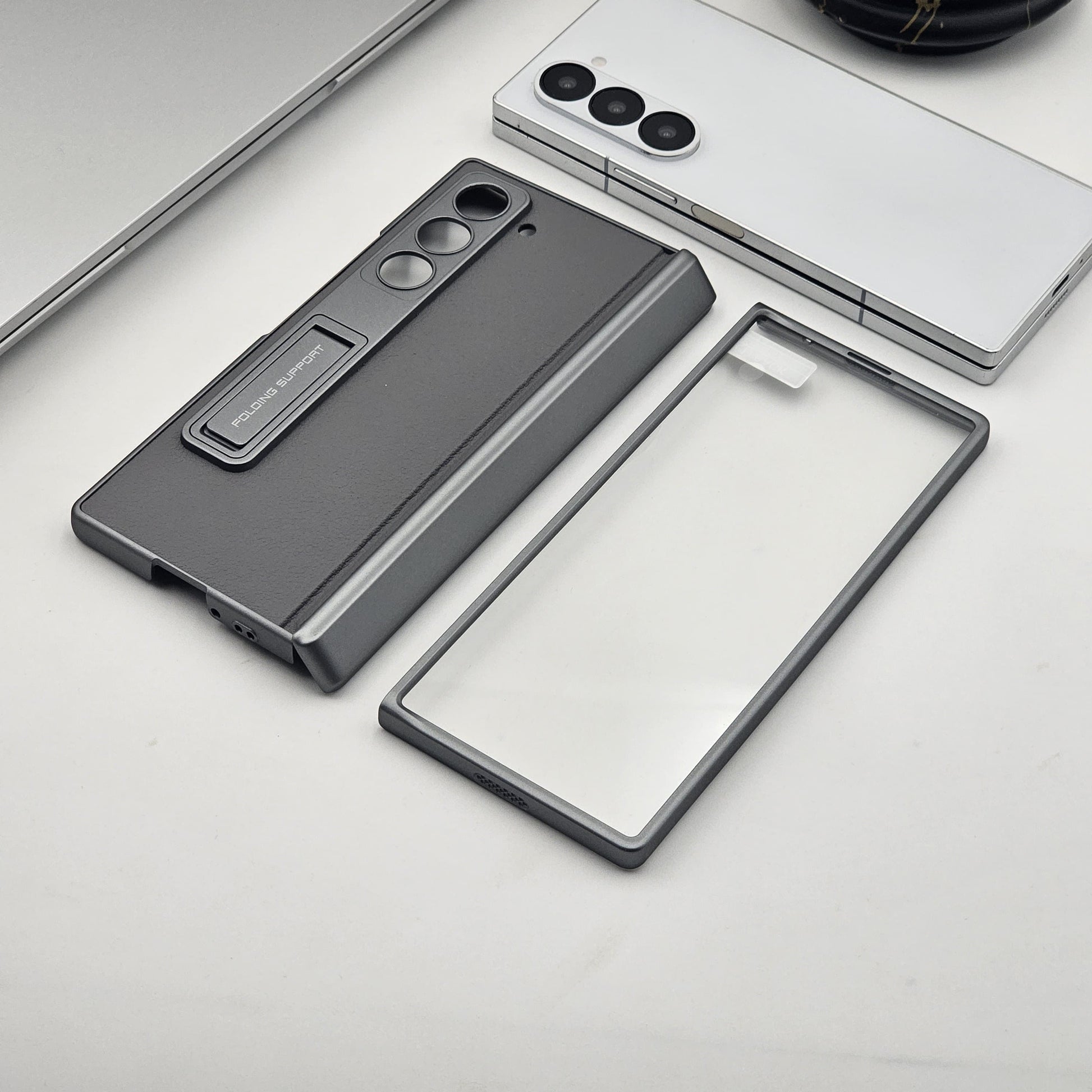Samsung Galaxy Z Fold 6 PU Leather Kickstand Front Screen Protector Case