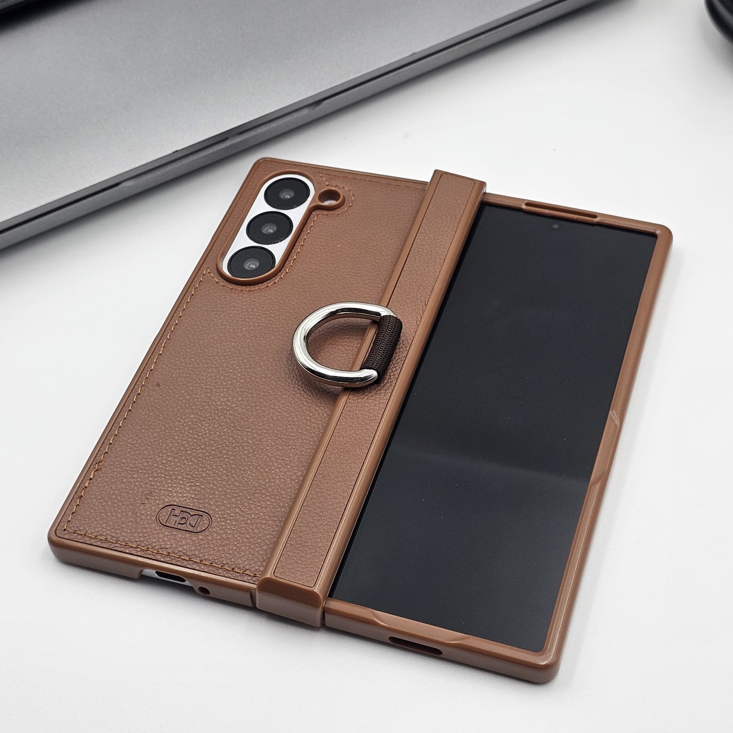 Samsung Galaxy Z Fold 6 With Hinge Protector PU Leather Case