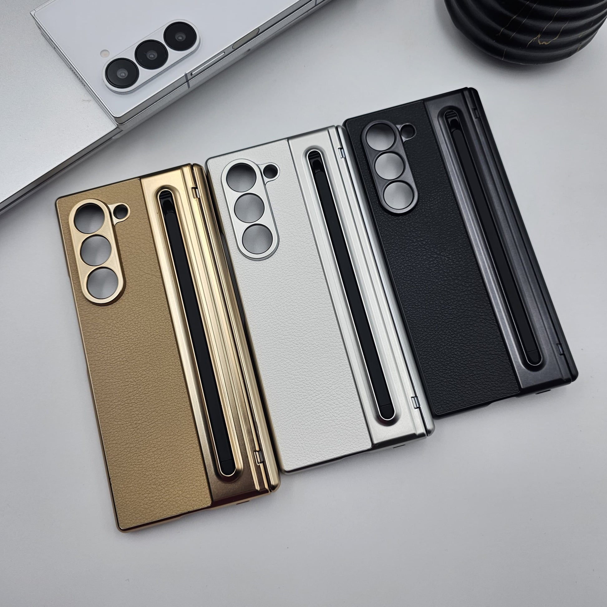 All-in-One Case | Leather Texture with Pen for Samsung Galaxy Z Fold 6 | Front Screen Protector & Side Hinge Protection