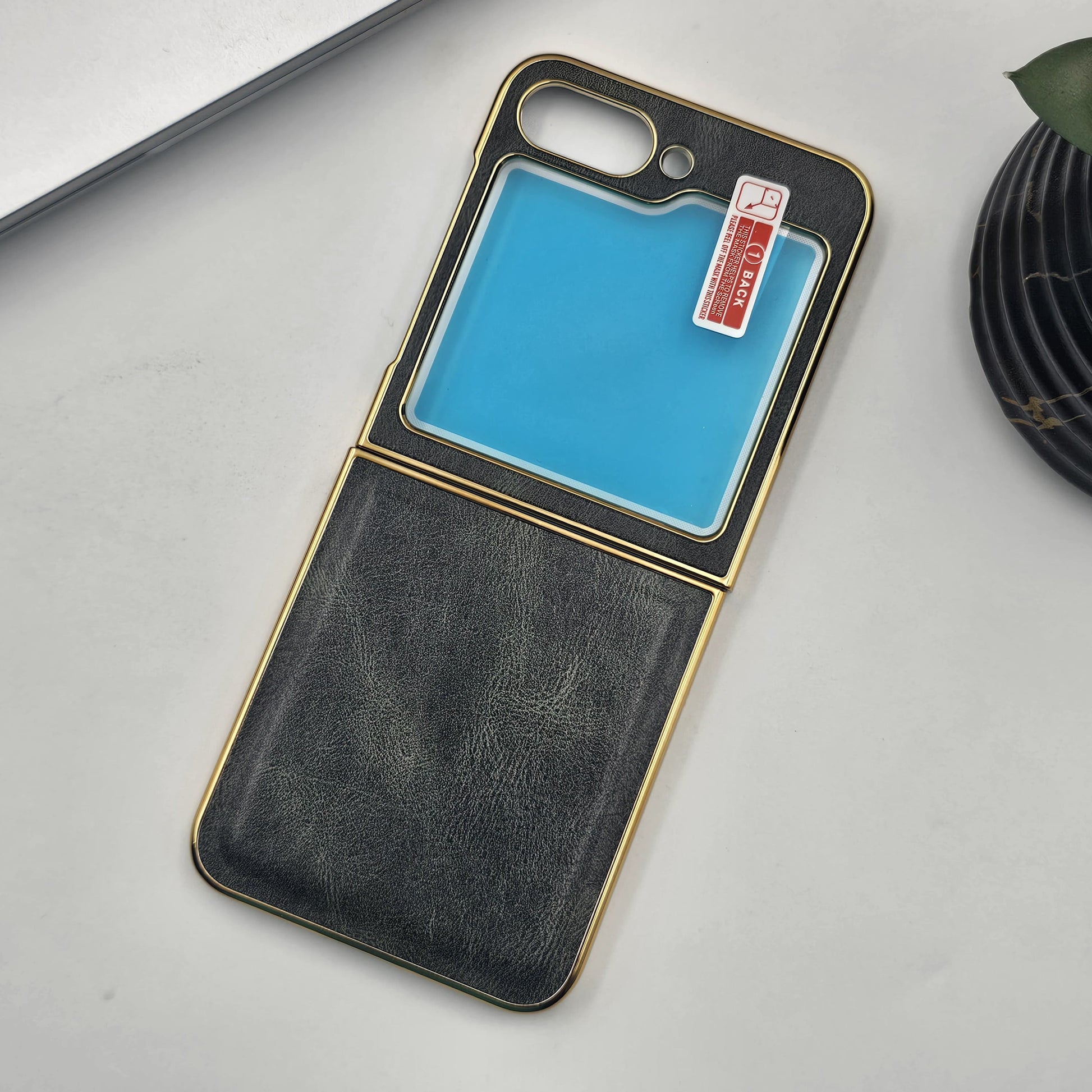 PU Leather Case with Screen Protector for Samsung Galaxy Z Flip 7 FE | Chrome Plated Cover