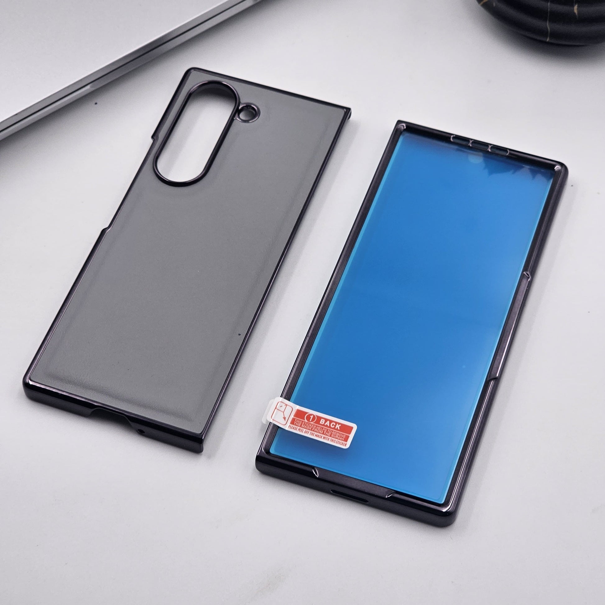 Samsung Z Fold 6 PU Gray Leather Chrome Plated Front Screen Protector Case