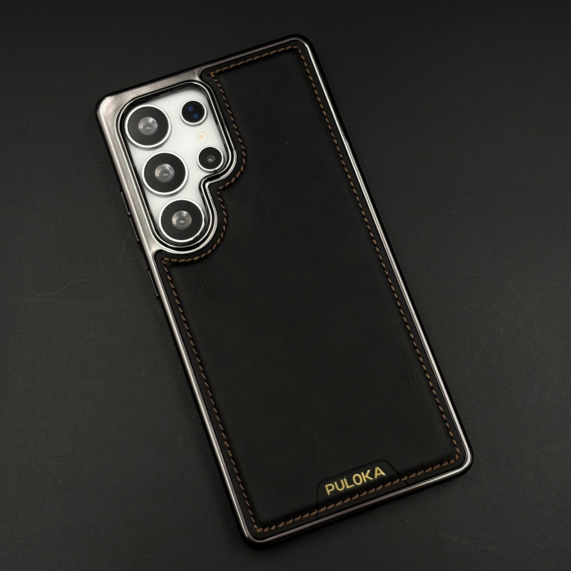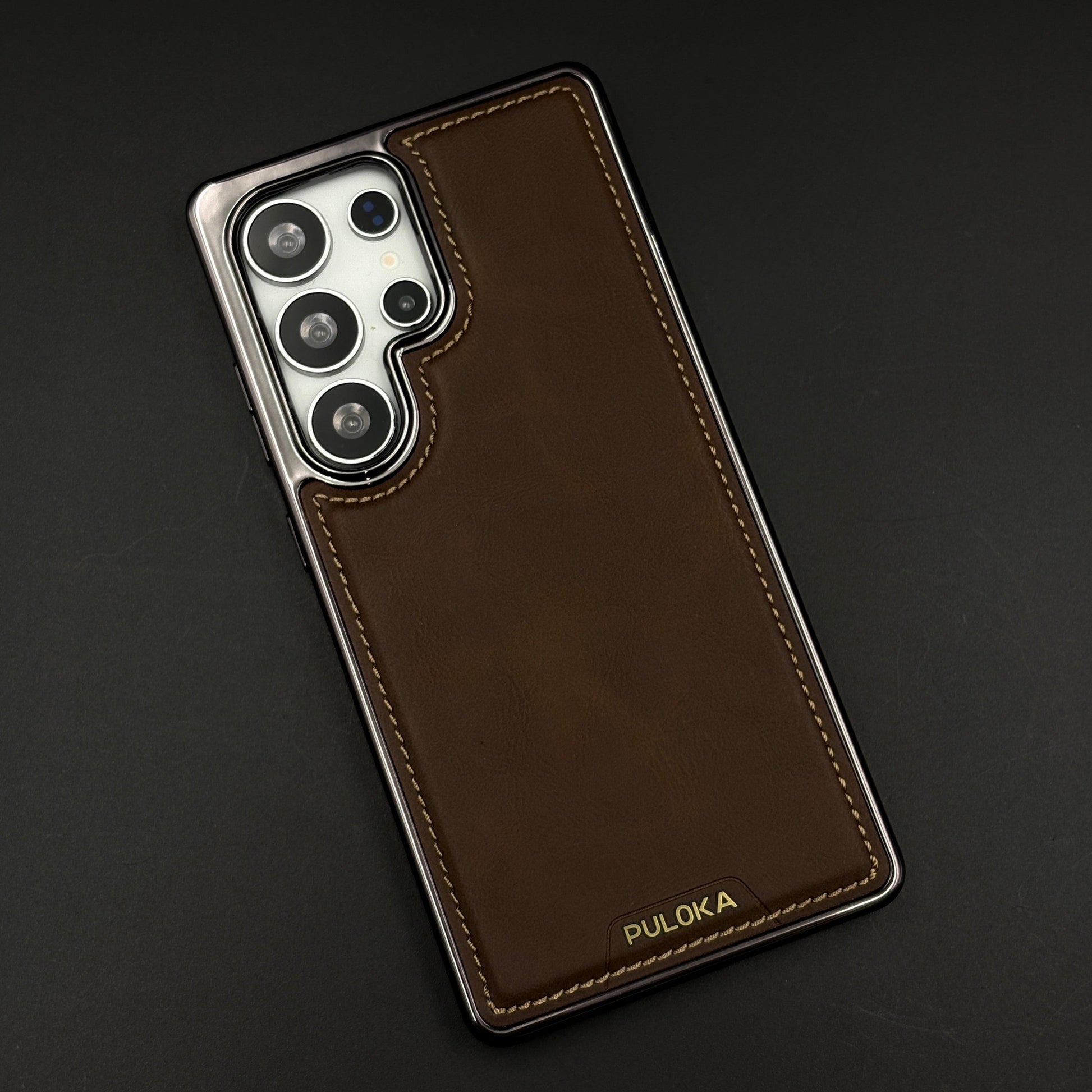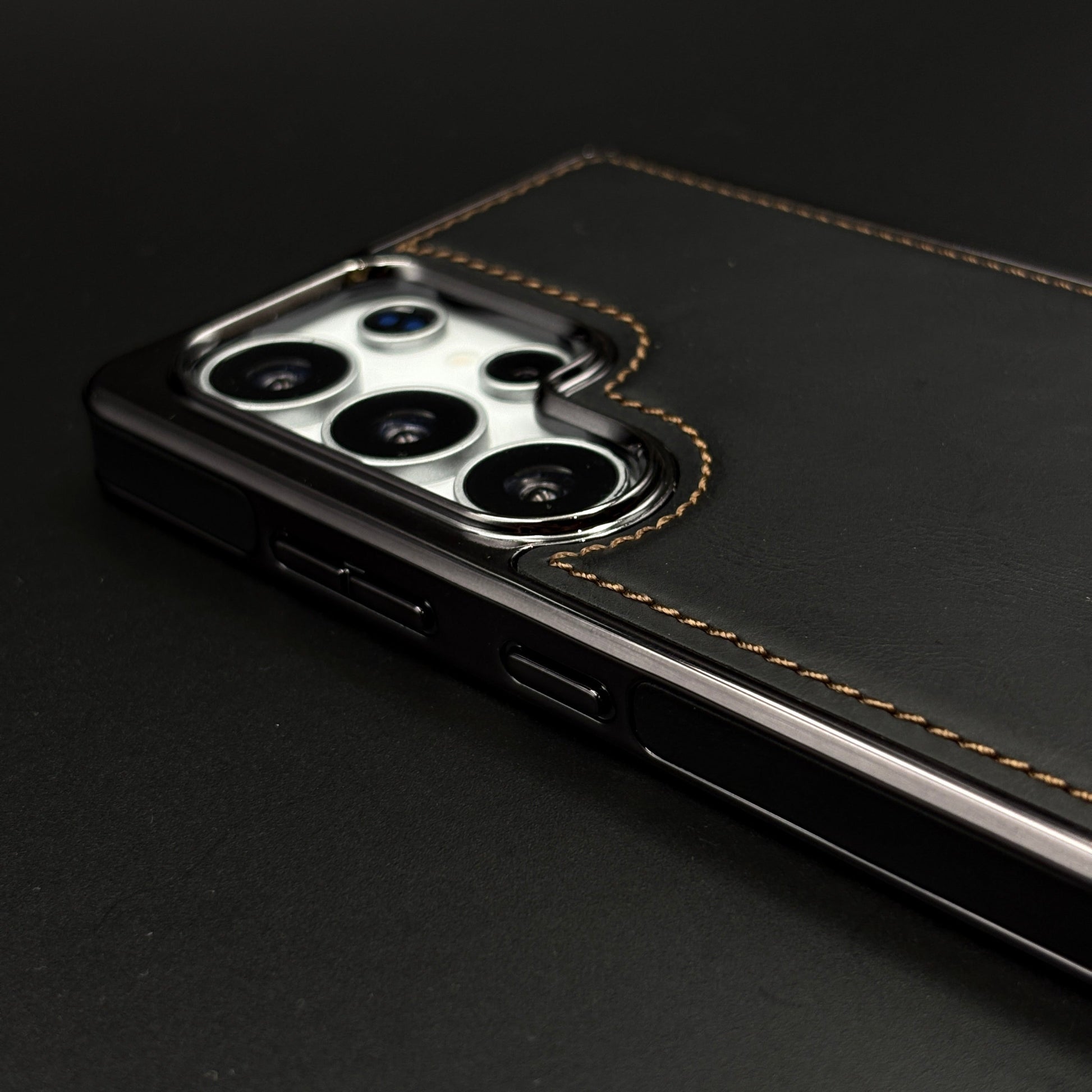 Stitch Leather Hidden MagSafe Case for Samsung Galaxy S24 Ultra | Chrome Trim Luxury
